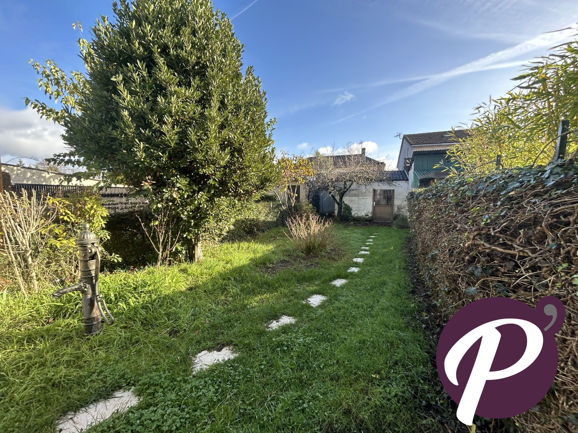 Maison composé au rez de chaussé d'un salon, cuisine aménagée et équipée, WC, véranda donnant sur un jardin clos de 170 m².
