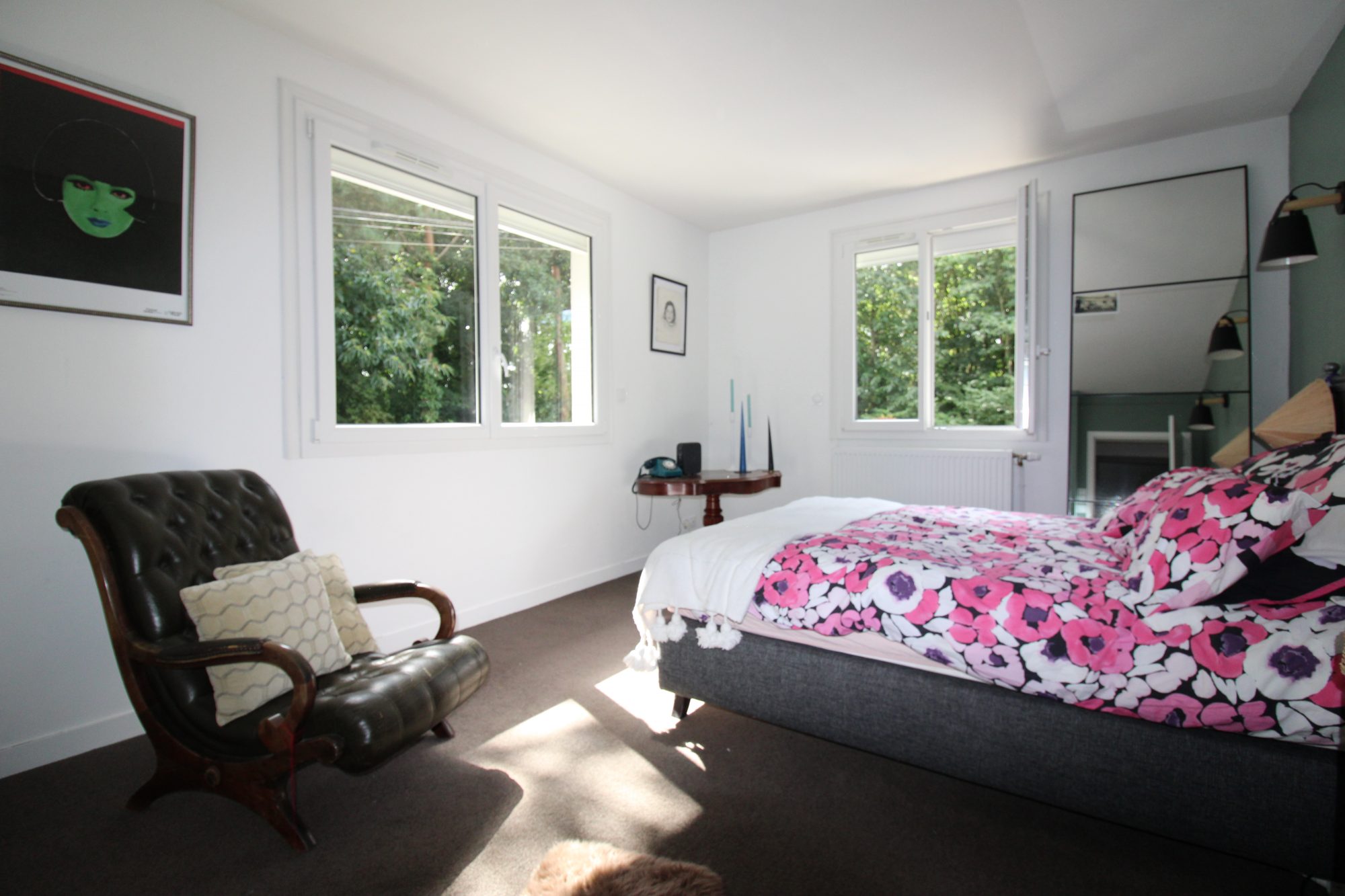 RENNES Poterie - Dans un jardin caché et entouré de bois, cette maison familiale atypique offre en rez-de-chaussée surélevé: entrée, séjour/salle à manger ouvrant sur une terrasse au sud, surplombant le jardin, cuisine aménagée et équipée, buanderie, deux chambres, salle de bains. A l'étage: 4 chambres, salle d'eau/WC et une mezzanine pouvant servir de salon TV ou salle de jeux.
