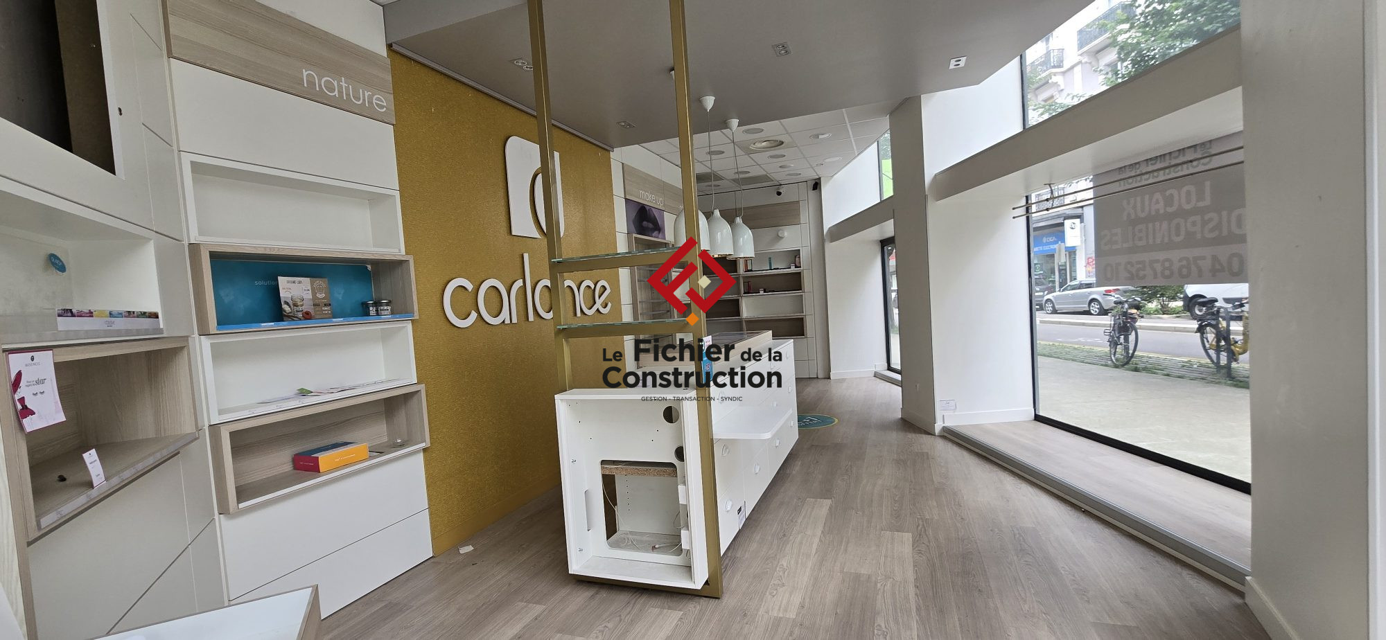 Vitrine de 8 mètres de long et hauteur sous plafond de 3 mètres vous permet de créer un espace ouvert et accueillant.