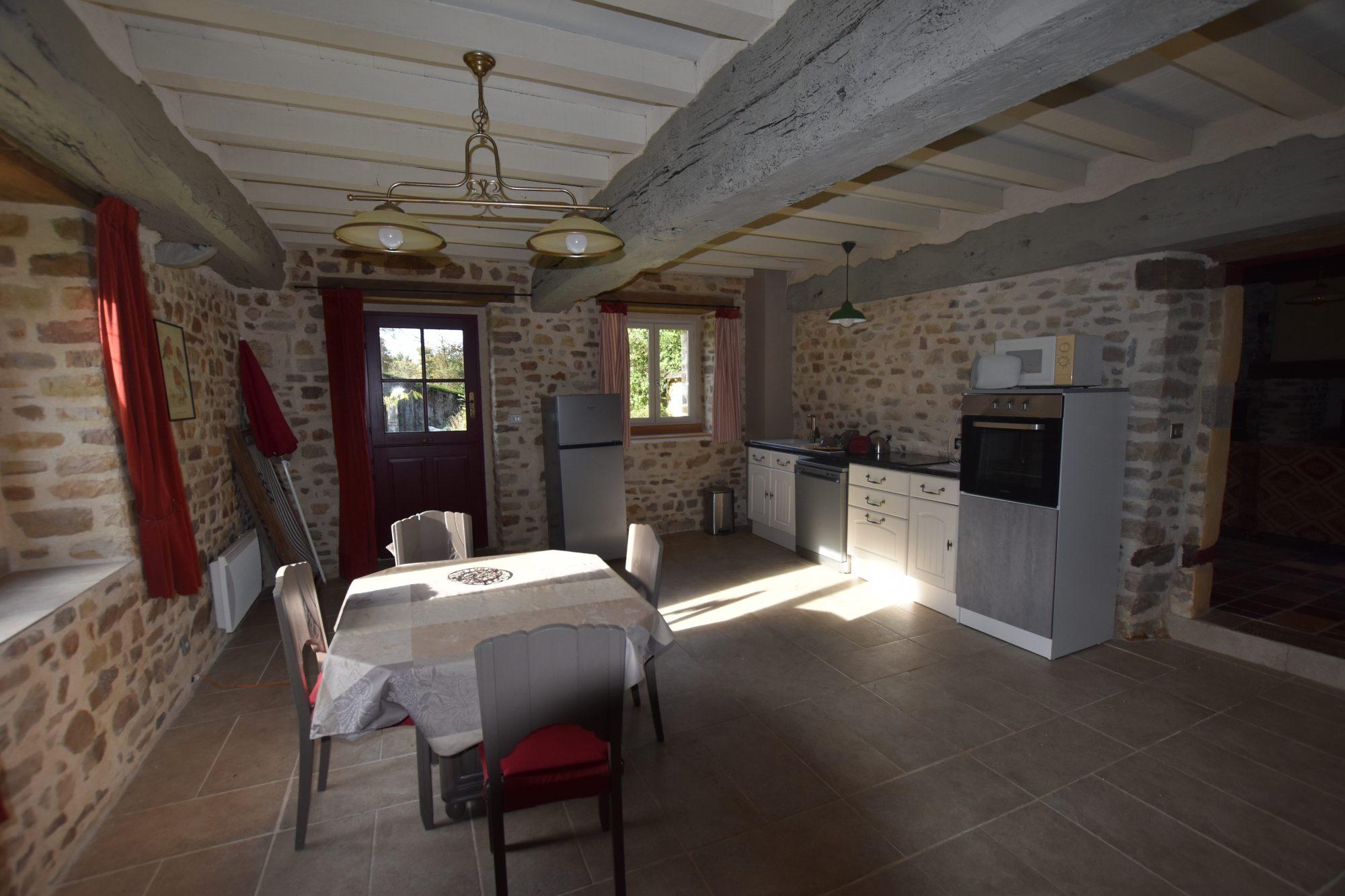 Le gîte, séparé du logis par la végétation et bénéficiant d'un accès et d'un parking séparés, offre: séjour avec poêle à bois, cuisine dinatoire, aménagée et équipée et deux chambres et salle d'eau à l'étage.
