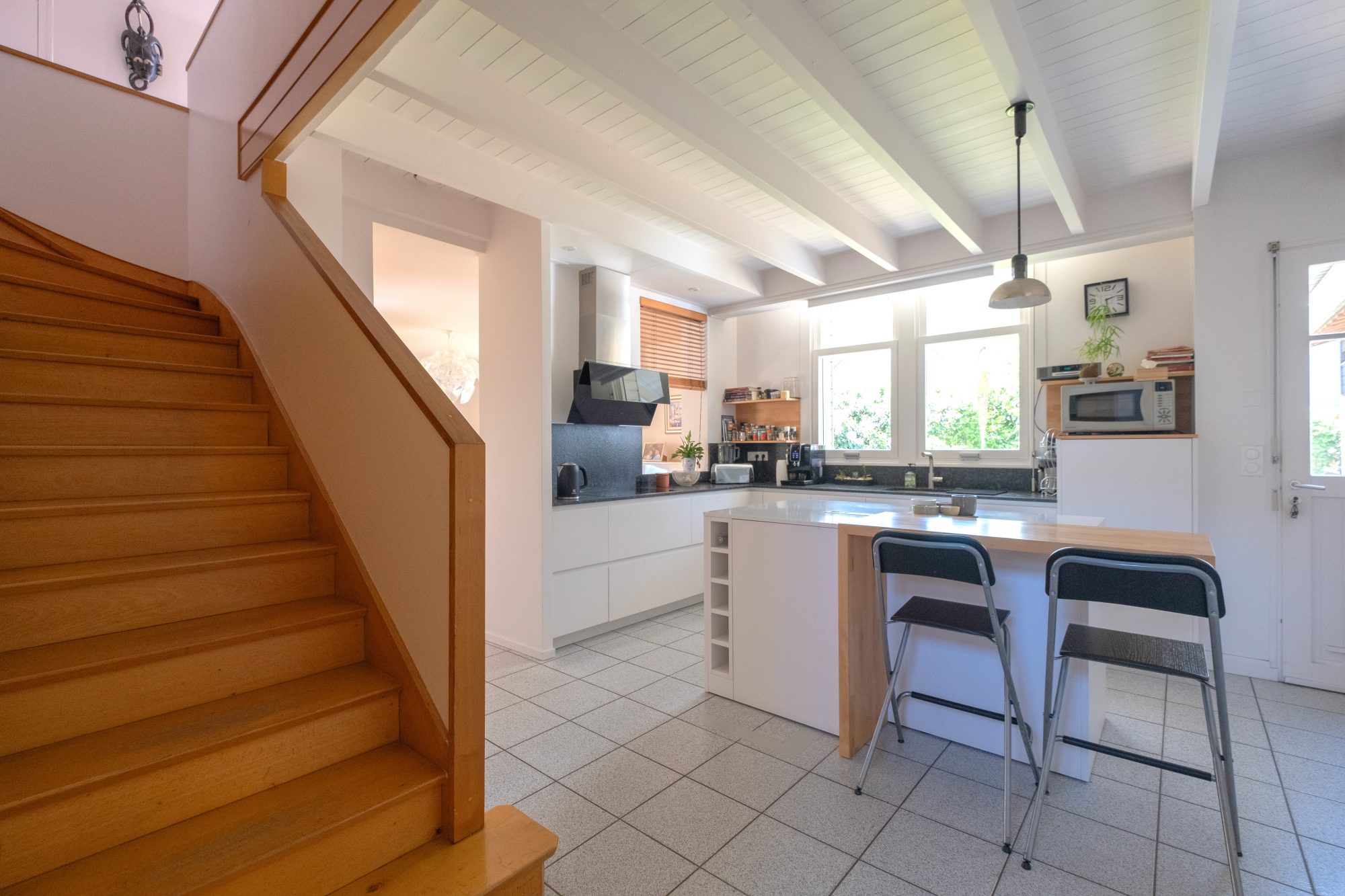 La maison, dessinée par architecte, est originale et lumineuse. Elle se compose d'une entrée, une vaste cuisine aménagée et équipée, d'un salon avec un poêle et d'une salle à manger ouverts sur la terrasse, buanderie, bureau et une suite parentale avec dressing, salle de bains et douche. A l'étage 4 chambres supplémentaires, une salle de bains et une salle d'eau.