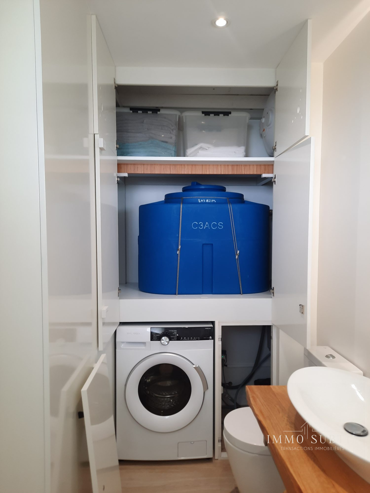 Il est équipé d'une machine à laver et d'une réserve d'eau de 300 litres,