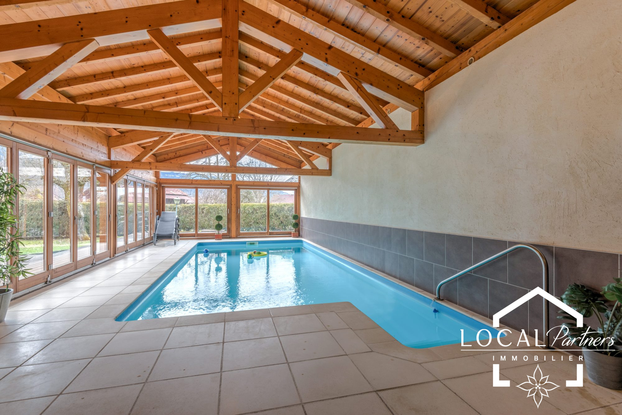 L'espace aquatique est une vraie merveille : une belle piscine chauffée par une pompe à chaleur avec vue sur le jardin , et un jacuzzi .
