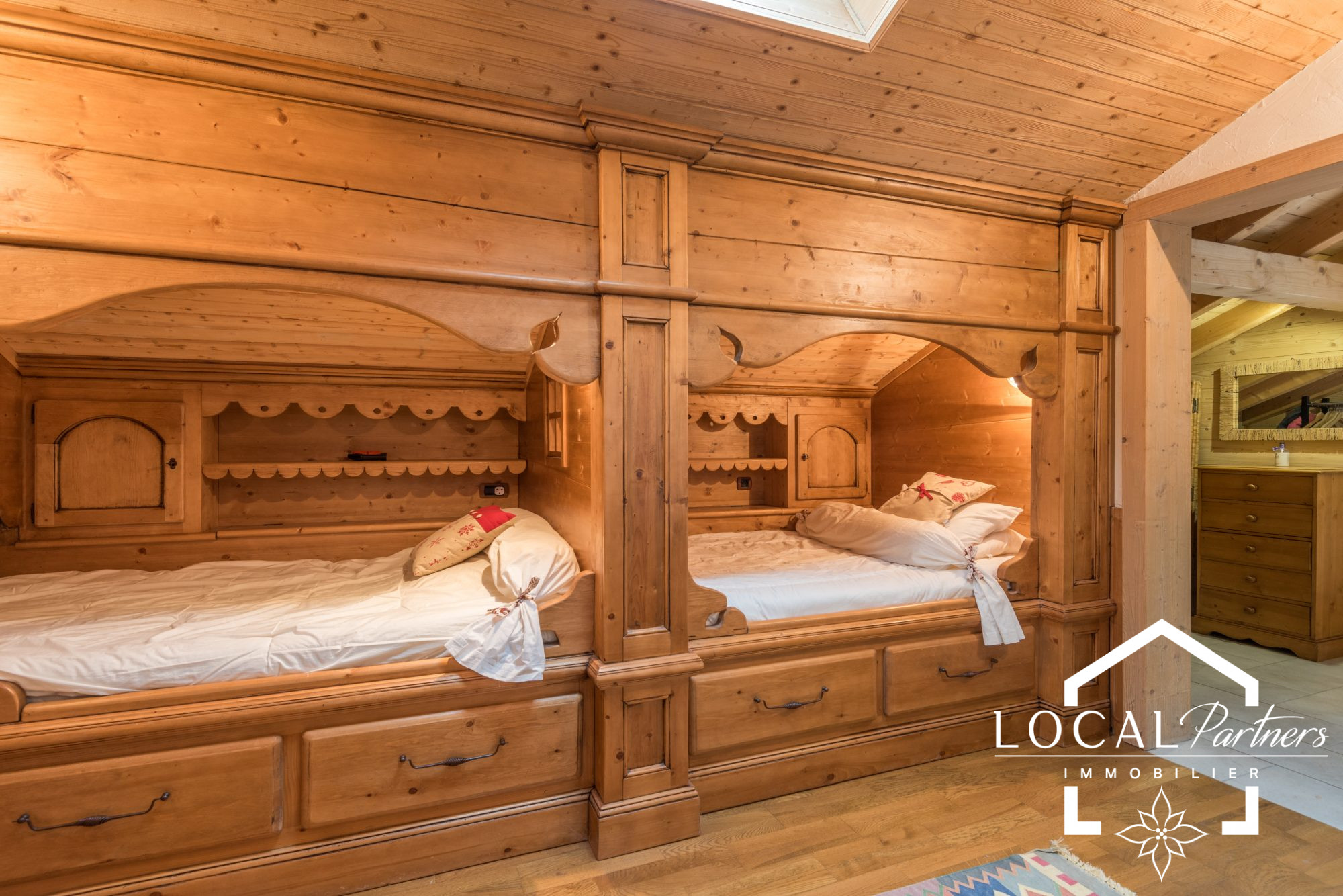 Au dernier niveau , une chambre avec 2 lits alcoves et une grande salle d'eau avec WC- une chambre double avec balcon , une salle de bains et WC indépendants .