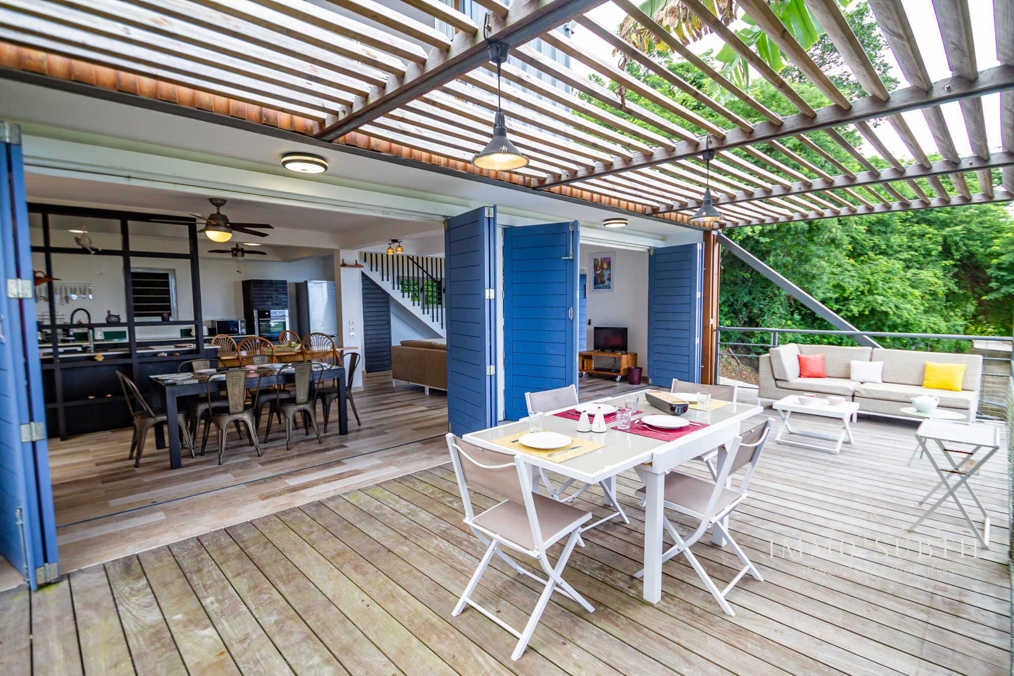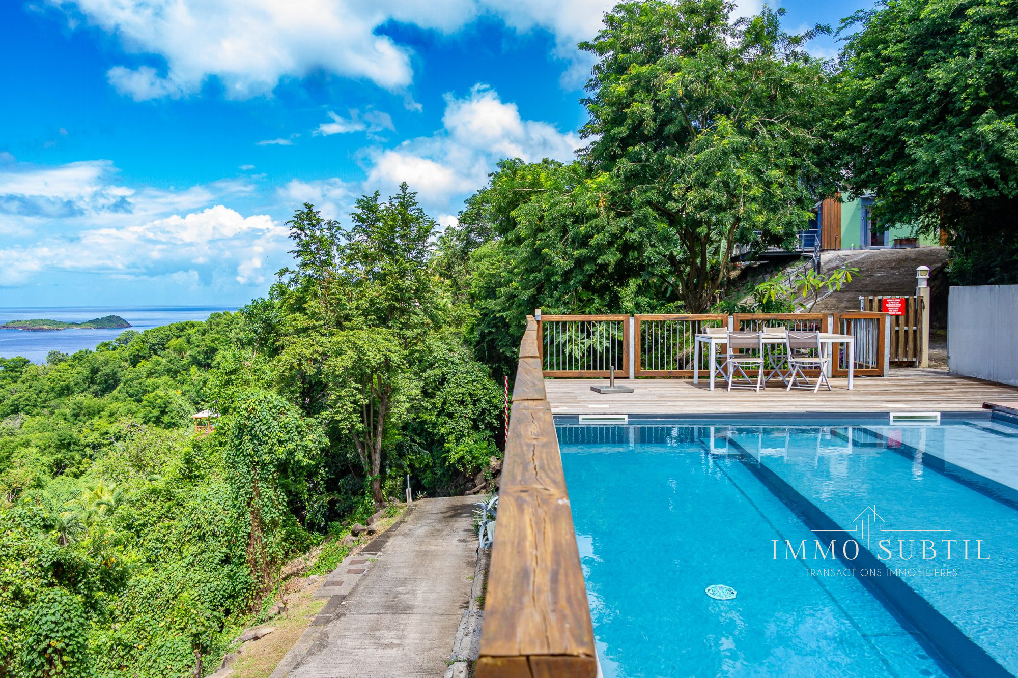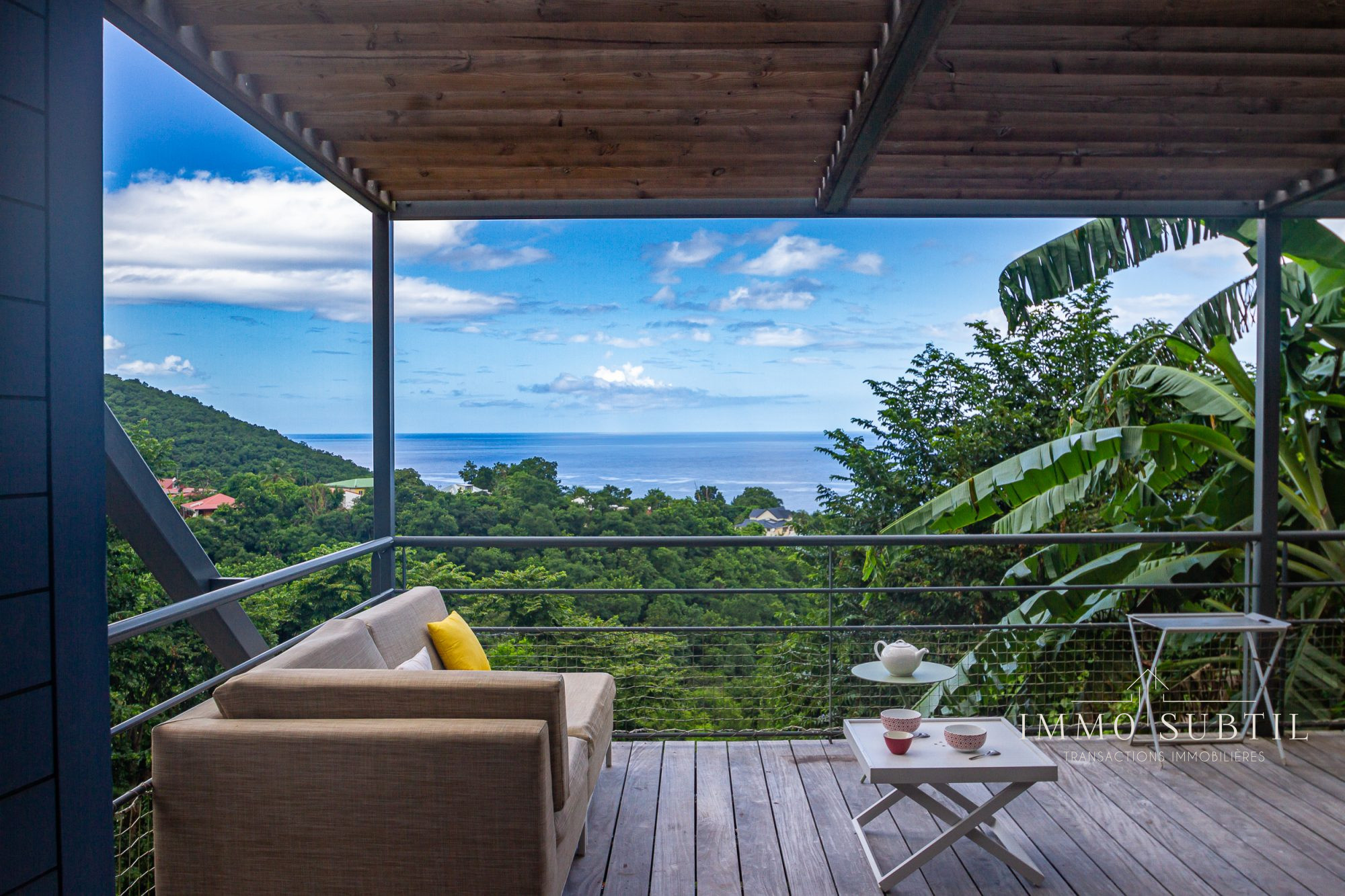 Les façades en rez-de-chaussée offrent des ouvertures sur la totalité de leur longueur, faisant ainsi profiter les espaces de vie de panoramas remarquables sur la mer, au loin et sur la végétation luxuriante.