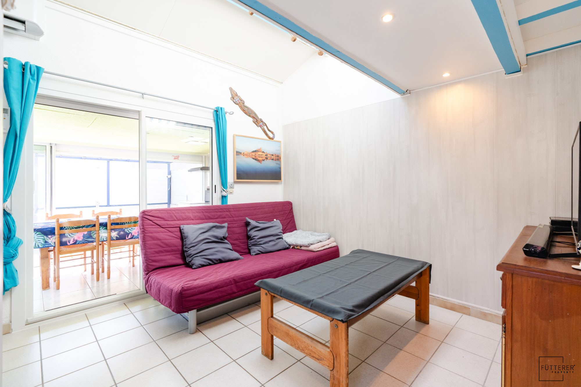Fütterer Property vous présente à Gruissan - Les Ayguades - EN EXCLUSIVITÉ : Pavillon 1 pièce + mezzanine de 37 m² (20,22 m² Loi Carrez) avec une terrasse clôturée sans vis-à-vis, exposée Est.