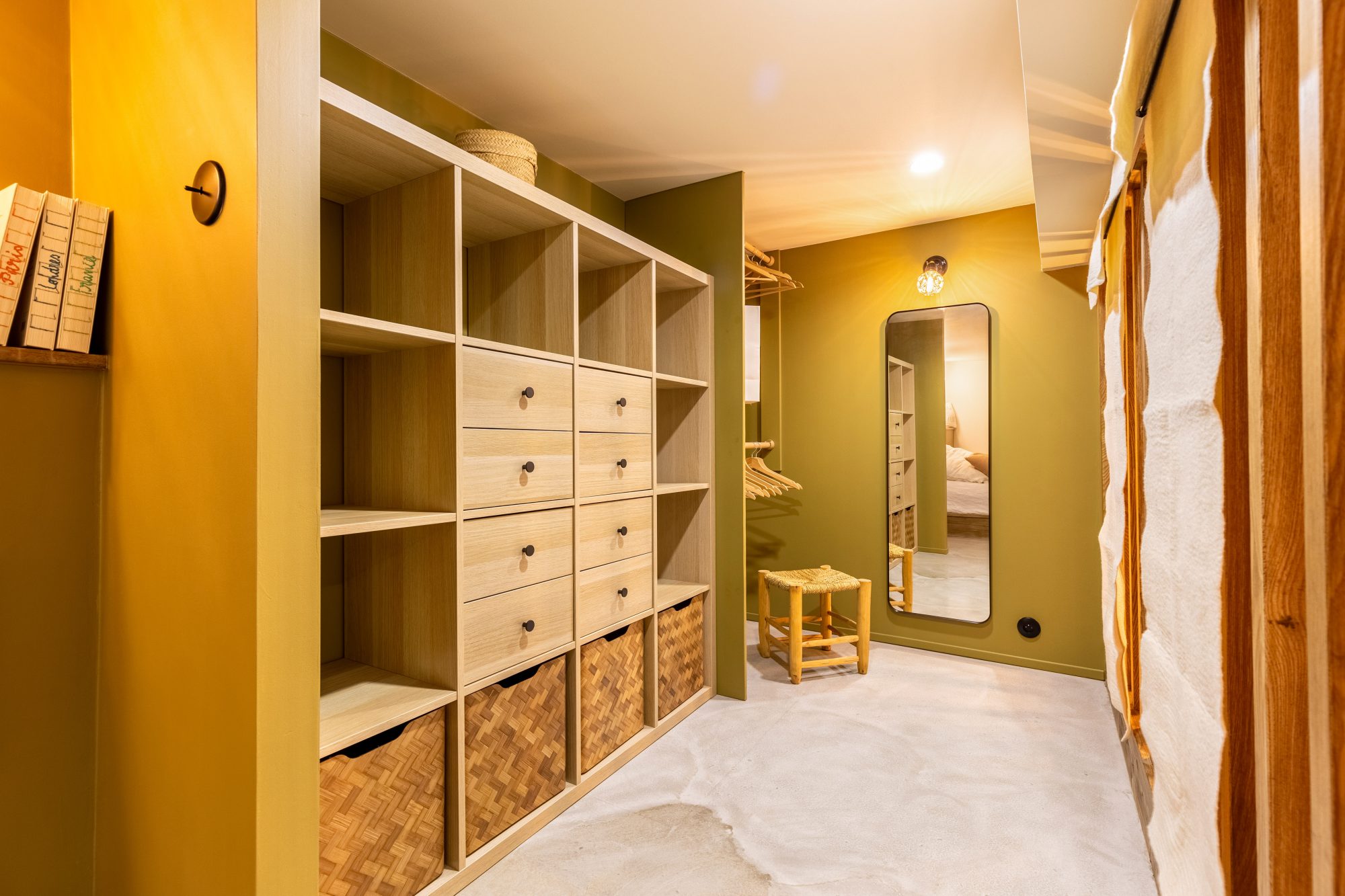 Une salle de douche , wc avec son sol en béton ciré complètent ce lieu.