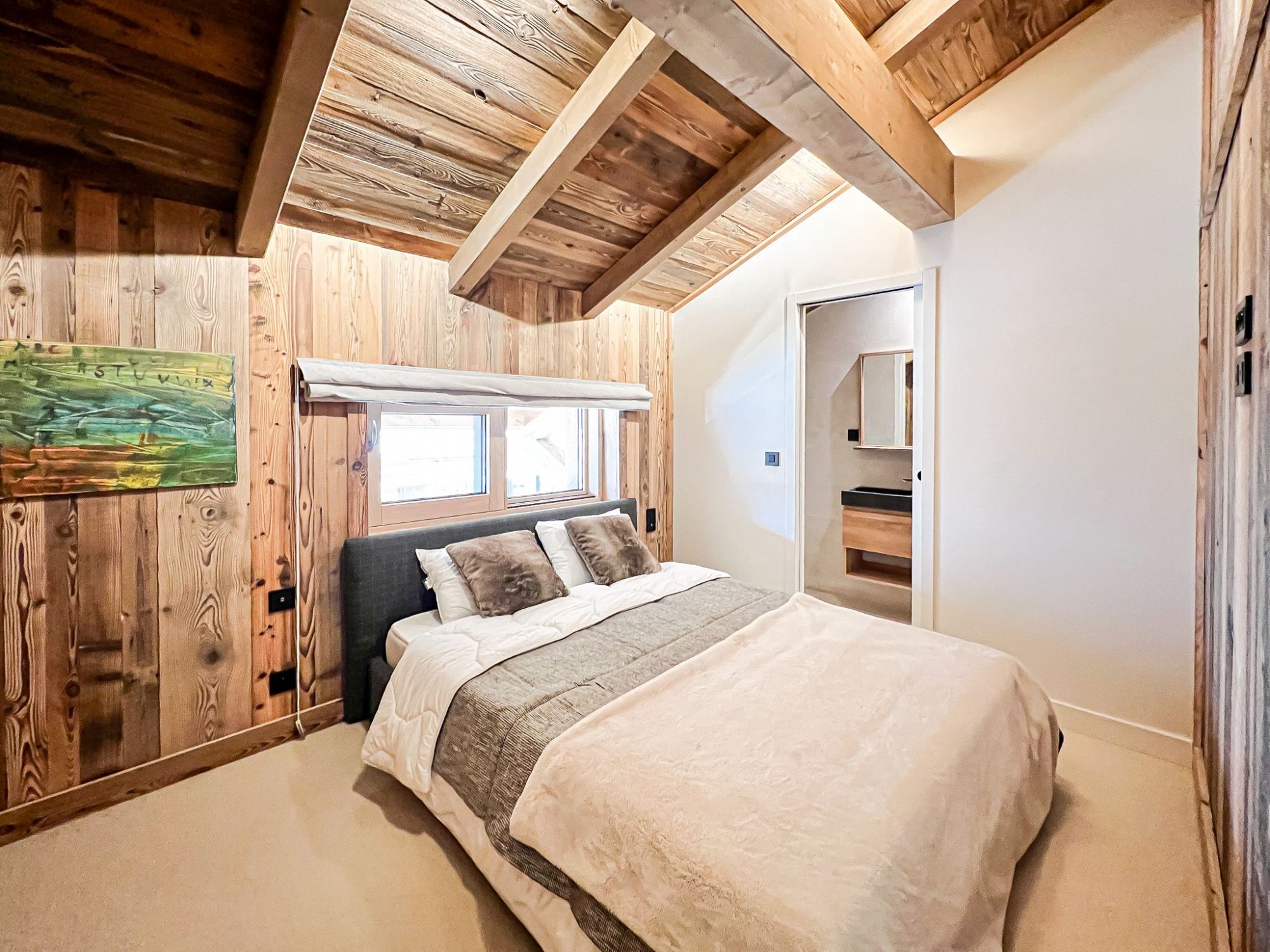 Les chalets développent environ 150m2 sur 3 niveaux révèlant un intérieur soigné, un décor à l'ambiance agréable à la fois contemporaine et dans l'esprit des lieux. Chaque chalet propose 4 chambres spacieuses avec chacune une salle d'eau privative dont 3 d'entre elles avec un WC privatif. Au rez-de-chaussée dans l'entrée se trouve également un grand ski room et des toilettes invités.