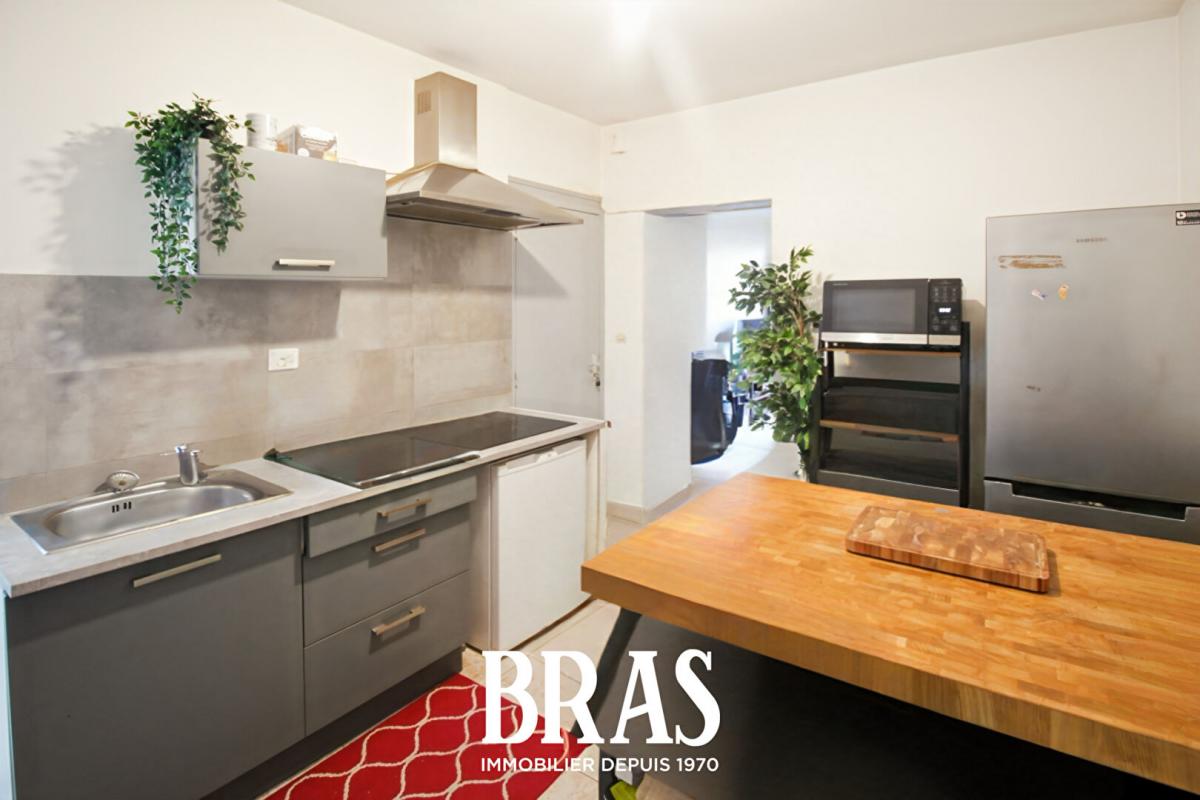 Appartement de type 2 au 1er étage d'un immeuble ancien, composé d'un salon, d'une cuisine aménagée, d'une chambre avec salle d'eau attenante et un wc.