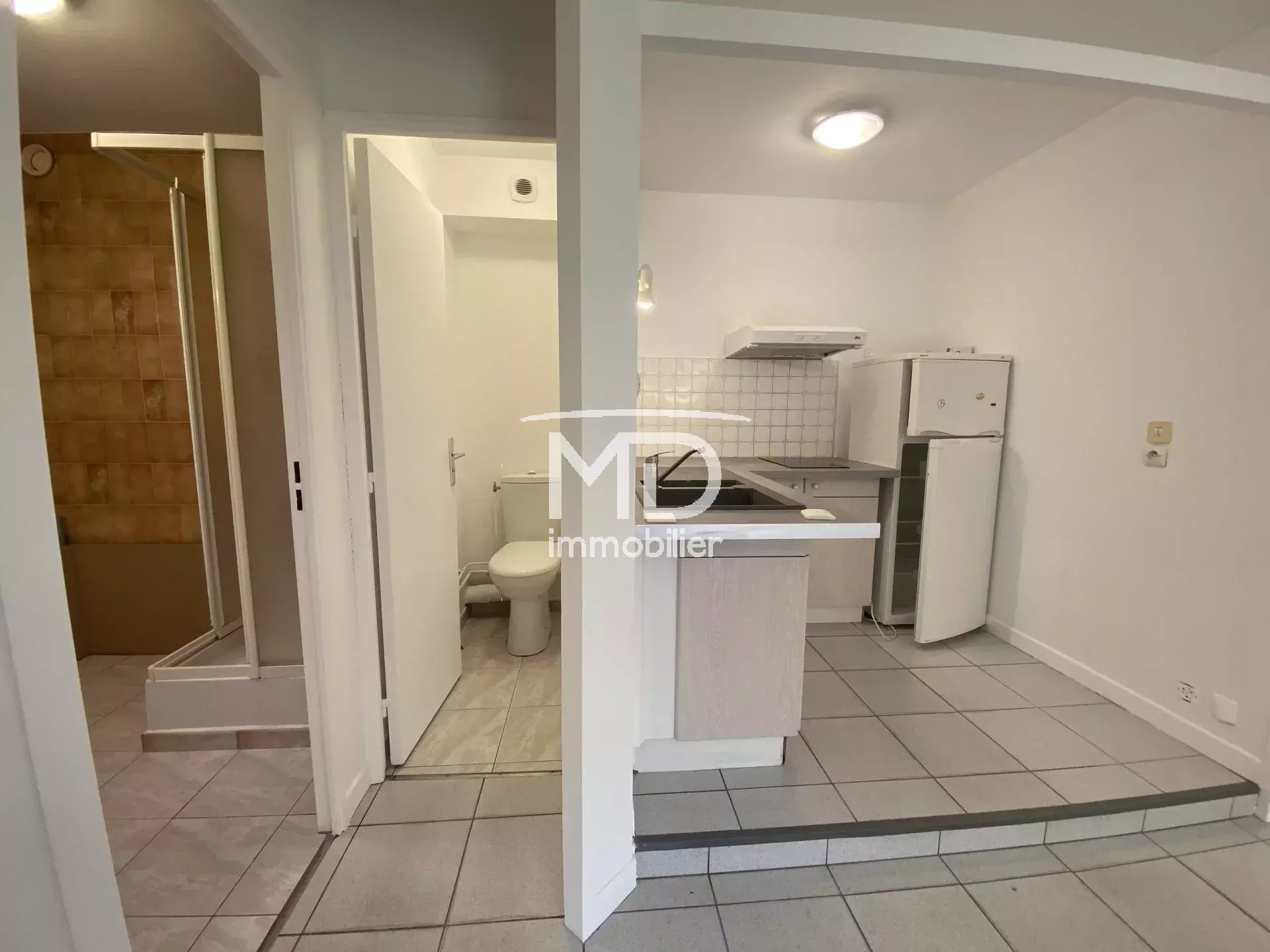 Il se compose : d'une entrée avec placard, d'un séjour avec porte-fenêtre sur jardin collectif, d'une cuisine ouverte aménagée semi-équipée, d'une chambre parquetée avec placard, d'une salle de douche et d'un WC séparé.