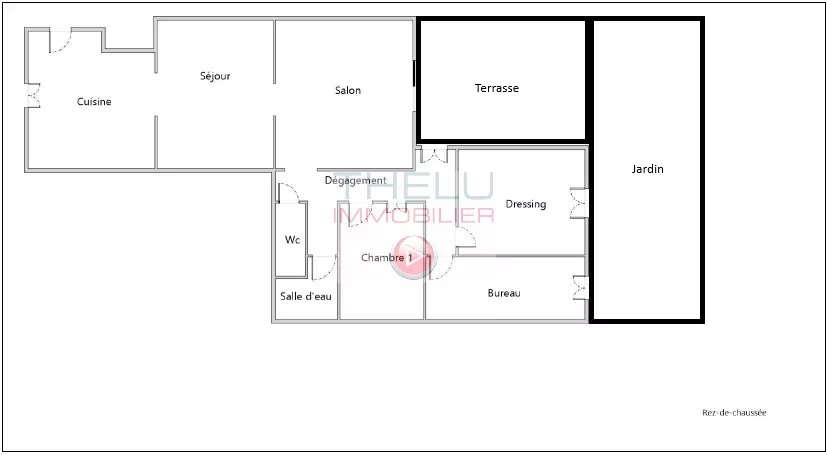 Au rez-de-chaussée : un appartement de 87 m² environ disposant d'une chambre, un grand bureau, un dressing, cuisine, séjour, salle à manger, salle d'eau wc séparés ainsi que la jouissance exclusive d'une terrasse et d'un jardin.