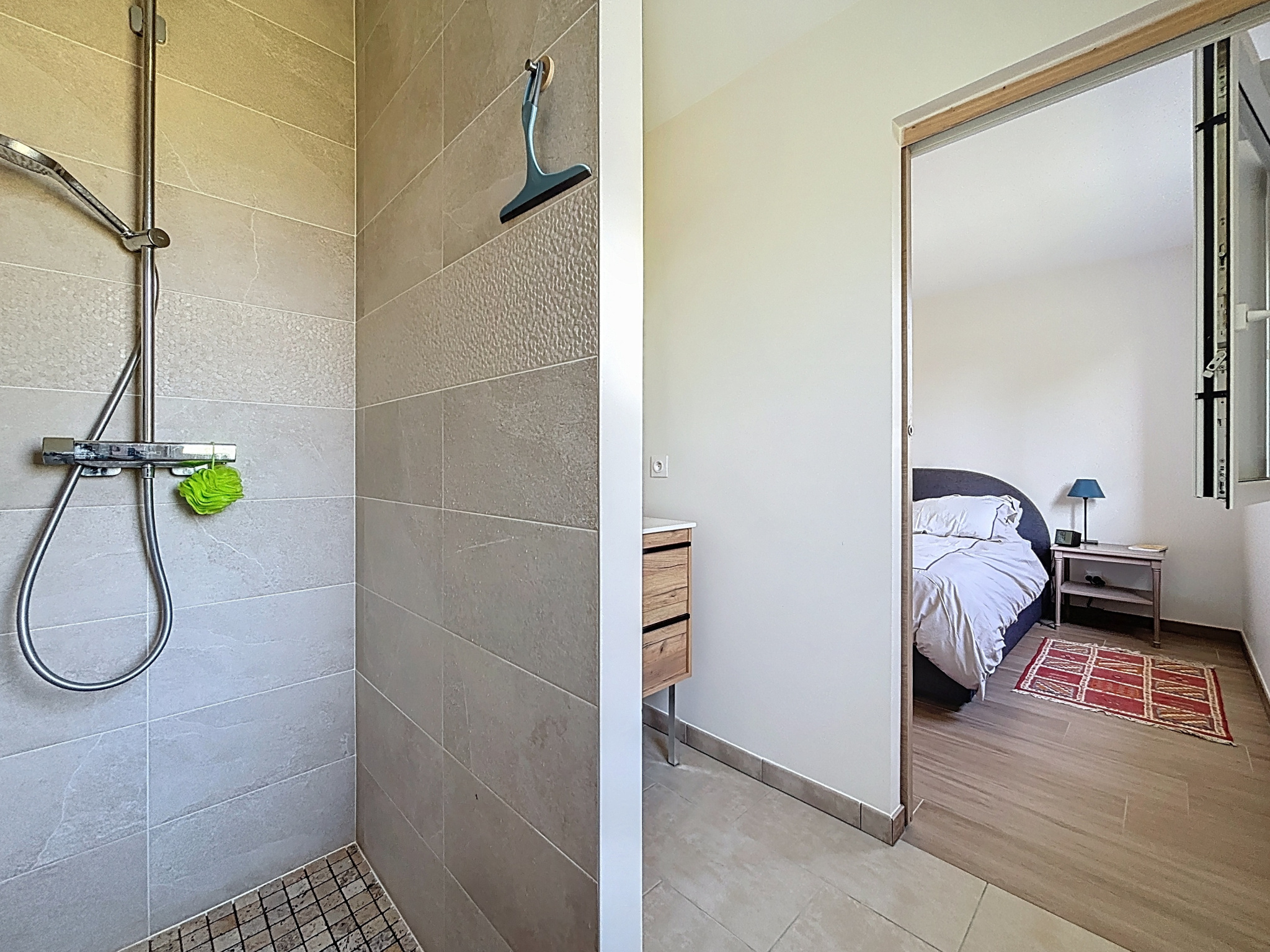 Dès l'entrée, vous serez séduit par la luminosité et les volumes généreux de cette maison d'une surface habitable de 117 m2. Le rez-de-chaussée s'ouvre sur une pièce de vie spacieuse et baignée de lumière, avec un salon-séjour chaleureux et une cuisine semi-ouverte, aménagée et équipé. Une suite parentale complète ce niveau, avec une chambre confortable, une salle d'eau privative et un dressing. Un WC indépendant se trouve également au rez-de-chaussée.