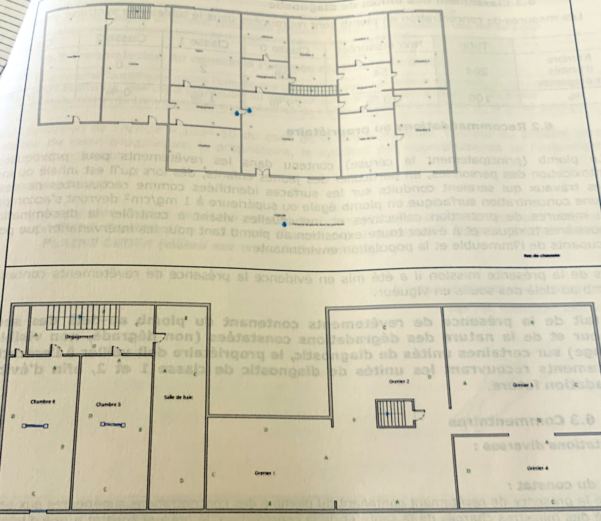 1er maison : rdc : séjour, cuisine, 1 chambre , cuisine annexe, chaufferie, wc, à l étage : 2 chambres, salle d' eau, wc .