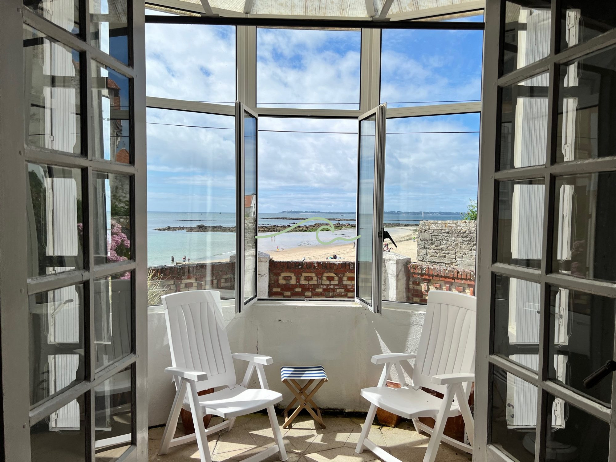 LARMOR PLAGE - Très bel emplacement pour cette villa du début du XXe. Elle a conservé son authenticité par ses hauteurs de plafond, ses parquets, ses cheminées, son escalier magistral. Les espaces de vie du rez-de-chaussée s'ouvrent sur une terrasse offrant une vue imprenable sur l'océan. Six chambres dont trois avec cabinets de toilette privatifs, toutes avec vue mer. Dressing, bureau. Caves, un garage de 30m2 et un garage de 35m2. Jardin clos de murs en pierres.