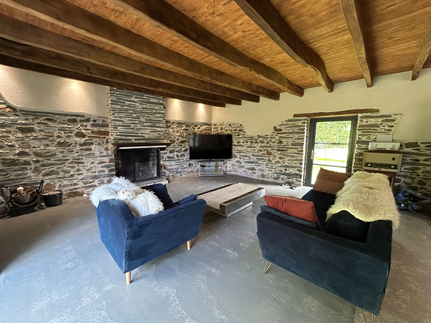 Côté technique : chauffage principal par cheminée et poêle à bois, complété par des radiateurs électriques. Assainissement individuel avec micro-station installée en 2014.