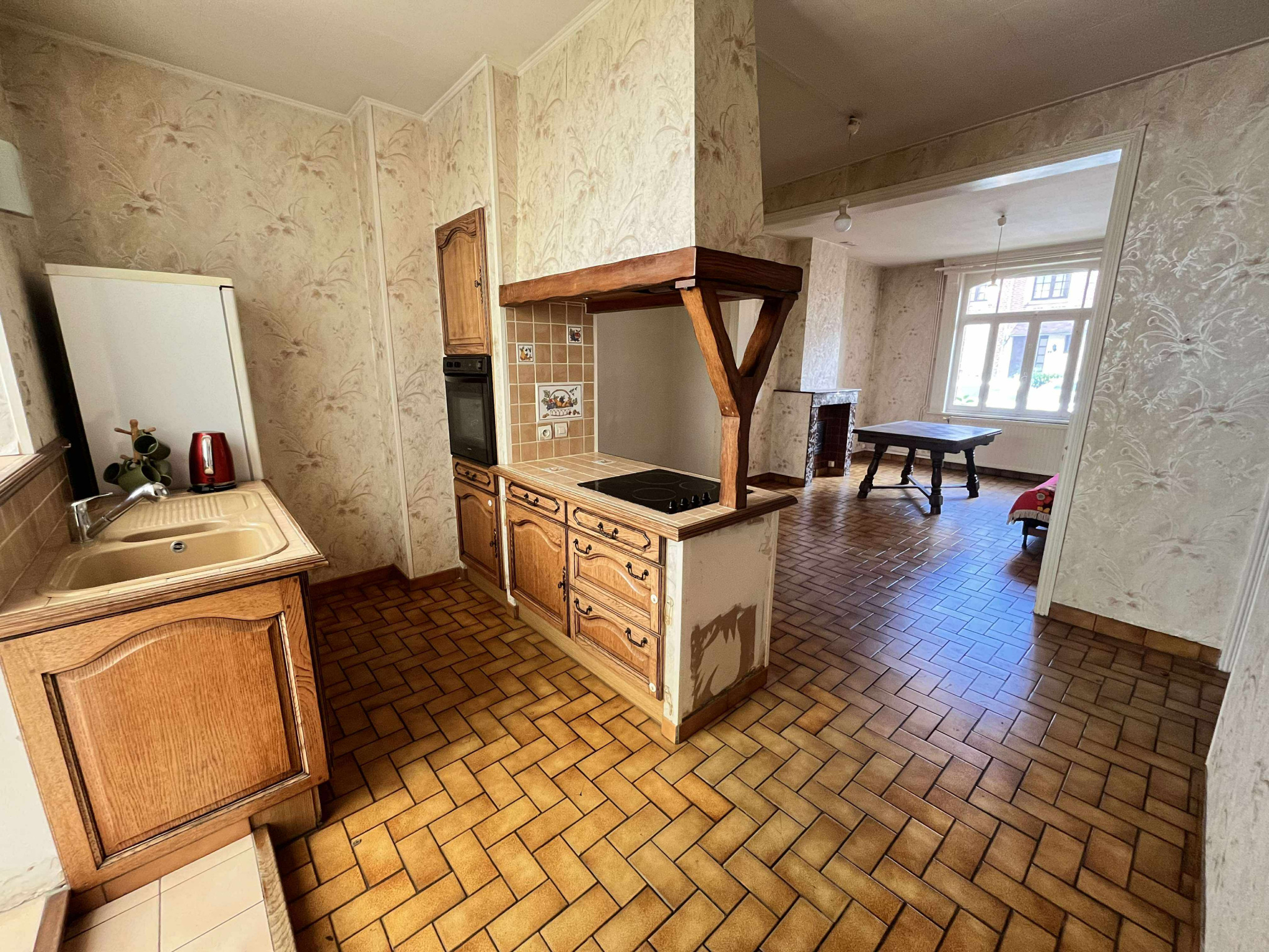 Au rez-de-chaussée, un hall d'entrée donnant sur un joli salon-sejour cuisine.