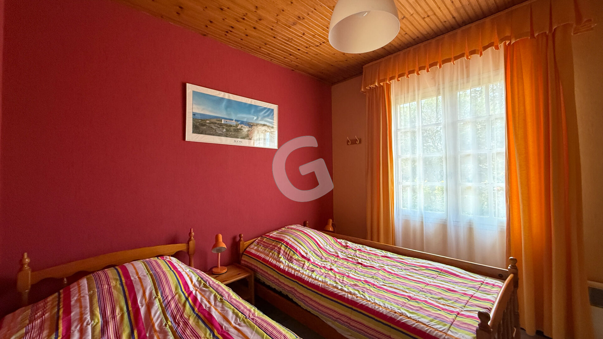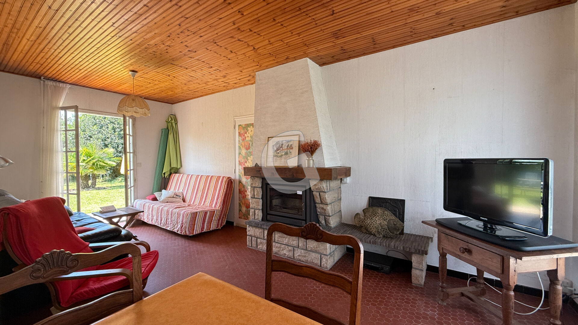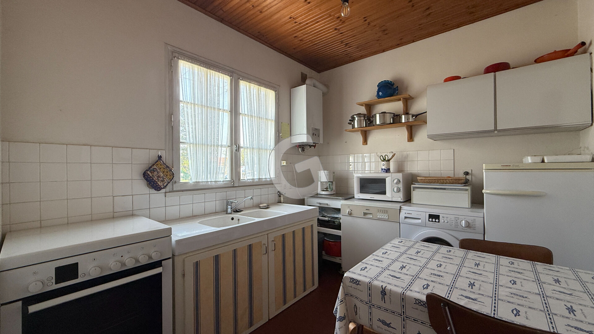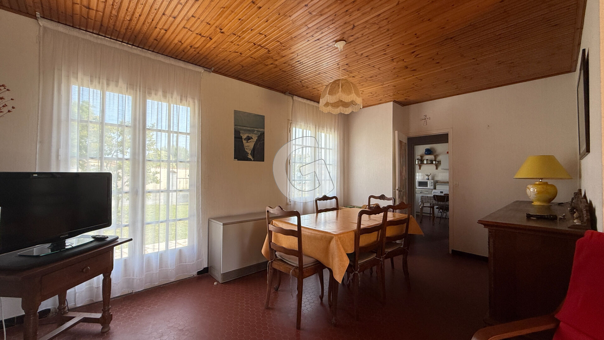Proche centre bourg, maison d'habitation comprenant un séjour/salon avec cheminée insert, un dégagement, 2 chambres avec placard, un wc, une salle d'eau et une cuisine meublée. Terrain exposé sud de 747 m².