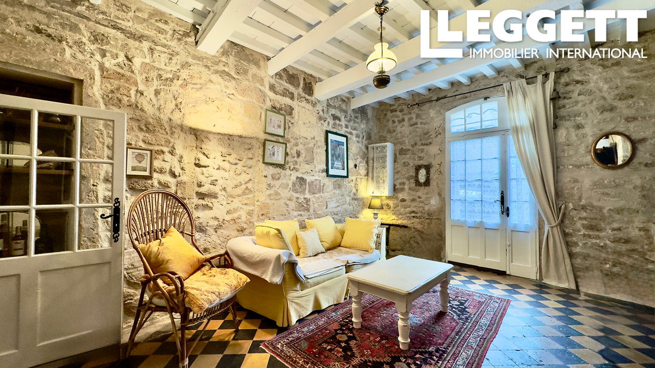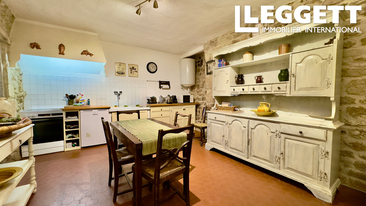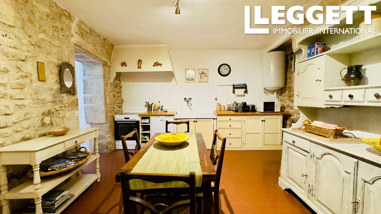 Offrant environ 60 m² de surface habitable, avec poutres apparentes, sols carrelés traditionnels, cheminée en pierre traditionnelle avec poêle à bois, un salon accueillant, une cuisine avec coin repas, et une salle de bain rénovée au rez-de-chaussée.