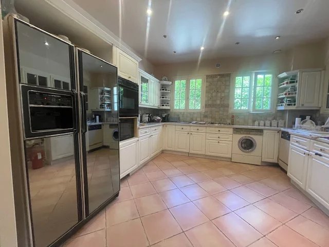 Au rez-de-chaussée : Hall d’entrée, cuisine aménagée et équipée, vaste salon d’environ 74 m² avec cheminée, salle à manger, un bureau, une chambre.