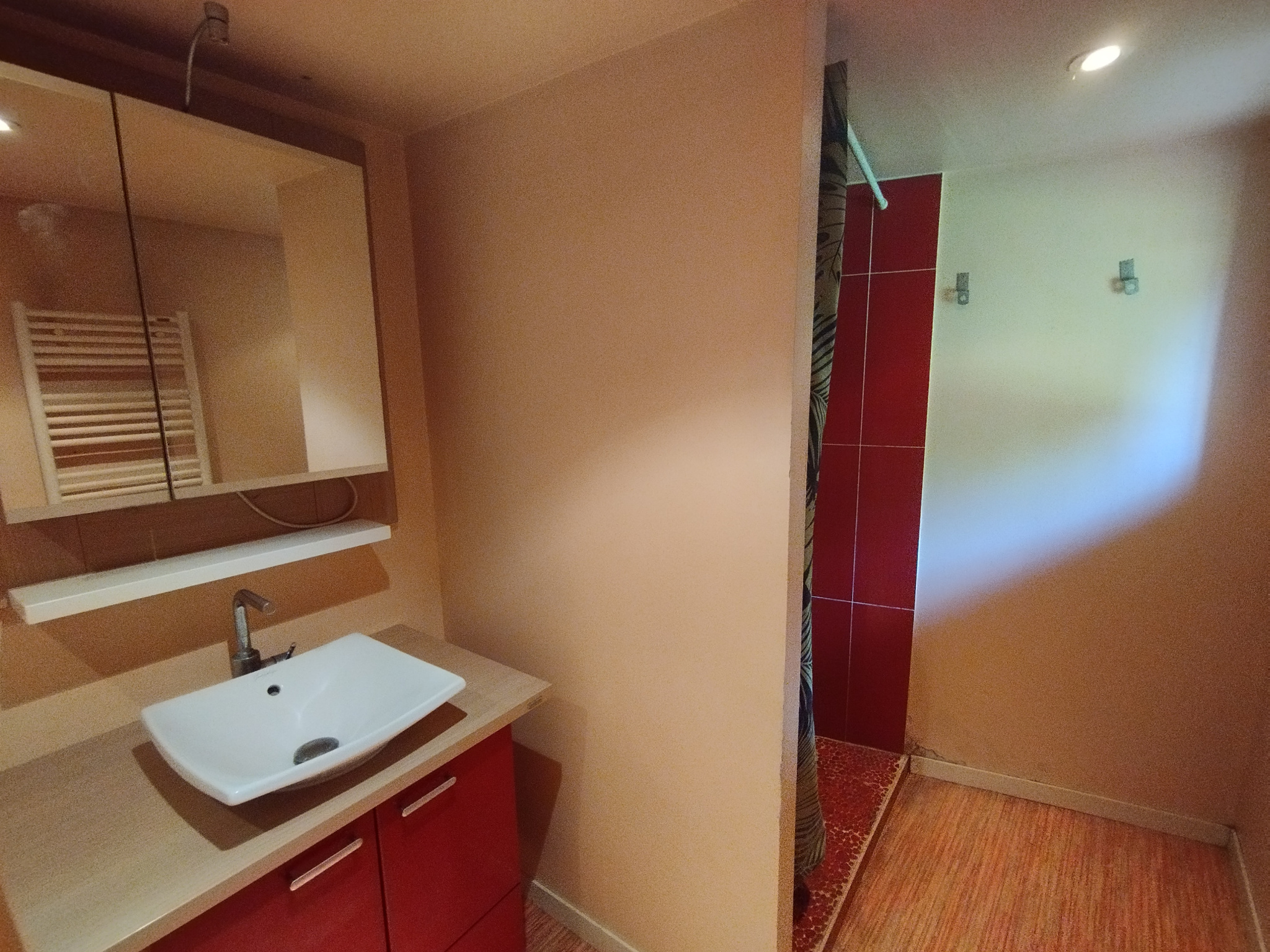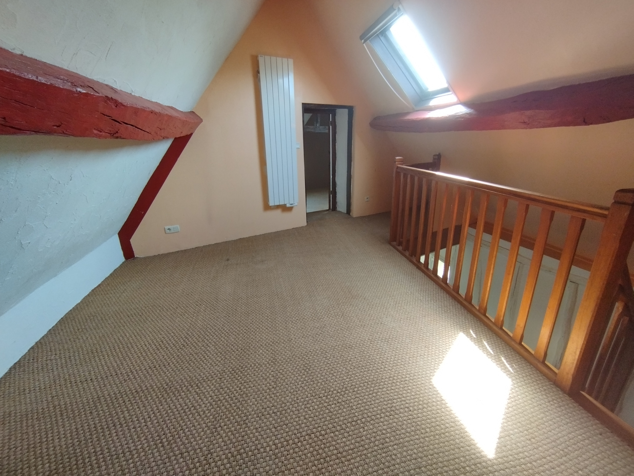 pièce de vie comprenant salon-séjour (poutres cheminée) cuisine aménagée, couloir desservant wc, salle d'eau, pièce