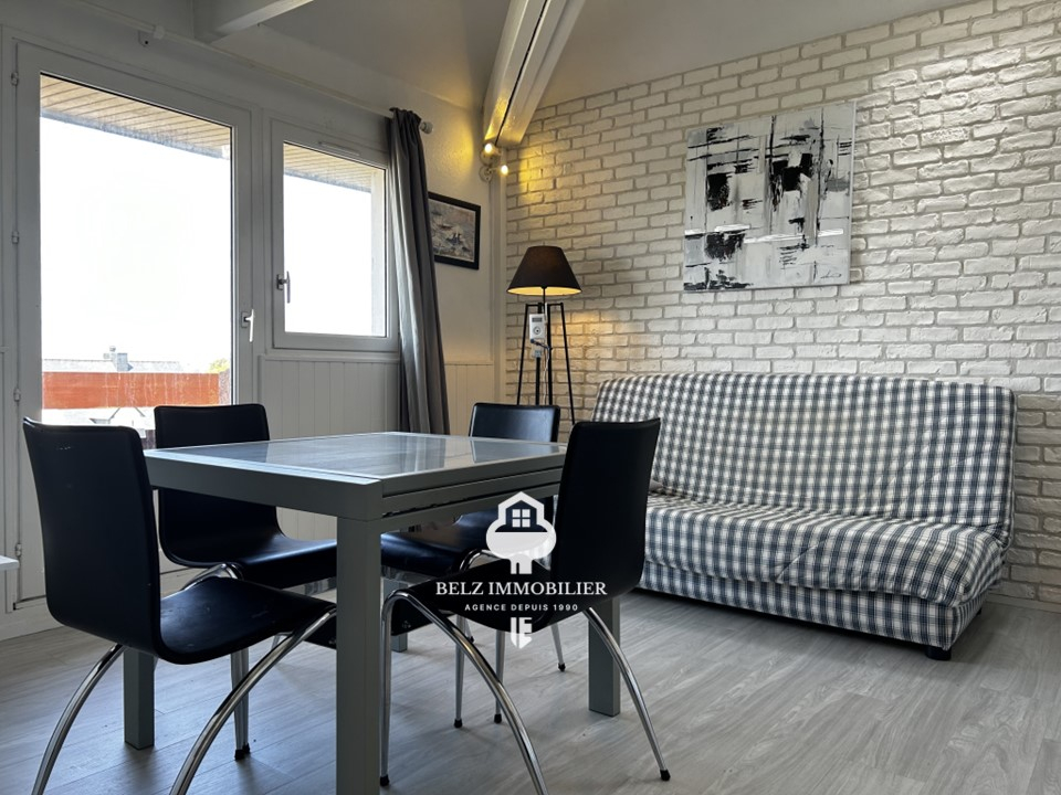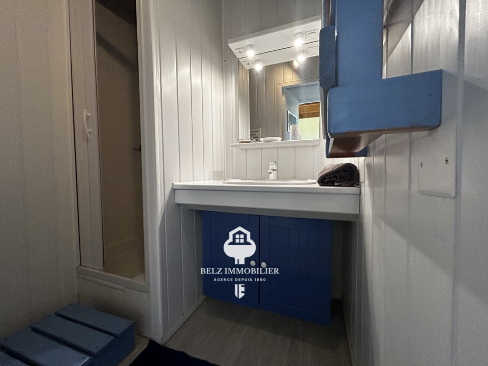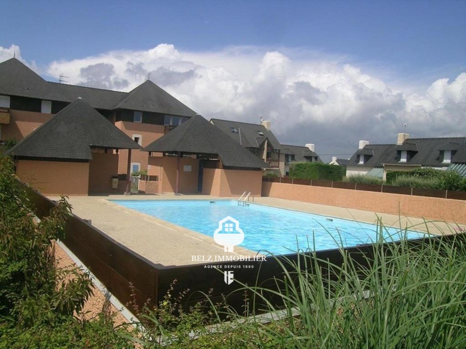 ERDEVEN, Aux bords des dunes et à proximité immédiate des plages, découvrez cet appartement T3 en BON ETAT situé au 2ème étage dans une résidence avec piscine privée. Au 2ème étage, il dispose d'une entrée avec placards, une pièce de vie donnant sur balcon, une chambre/cabine, une salle d'eau, wc. Grande chambre en mezzanine. Parking. Idéal en pied à terre !