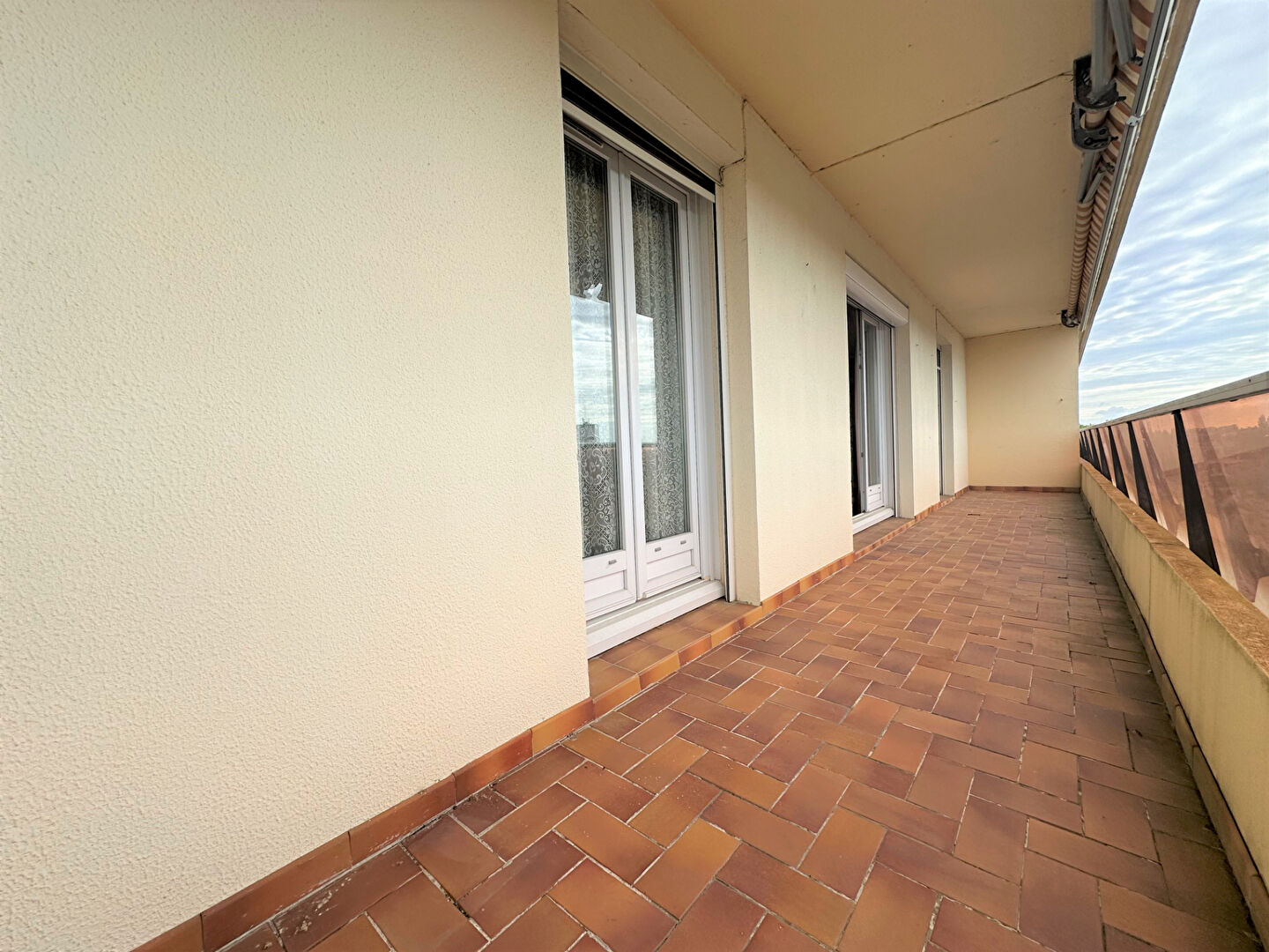 Bel appartement lumineux situé au dernier étage avec ascenseur, comprenant une entrée spacieuse avec placards, salon séjour avec accès sur un beau balcon, cuisine aménagée, arrière-cuisine, salle d'eau, WC, 3 chambres dont une donnant sur le balcon.