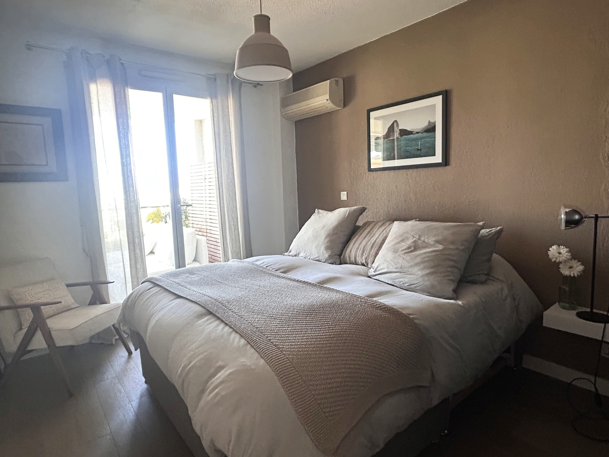 Au 3ème étage d'une petite résidence récente et sécurisée située à moins de 10 min à pied de la mer, laissez vous envoûter par ses volumes, sa terrasse avec sa vue dégagée à 180o : de la gauche sur les collines à la droite sur les îles avec un joli aperçu mer.
