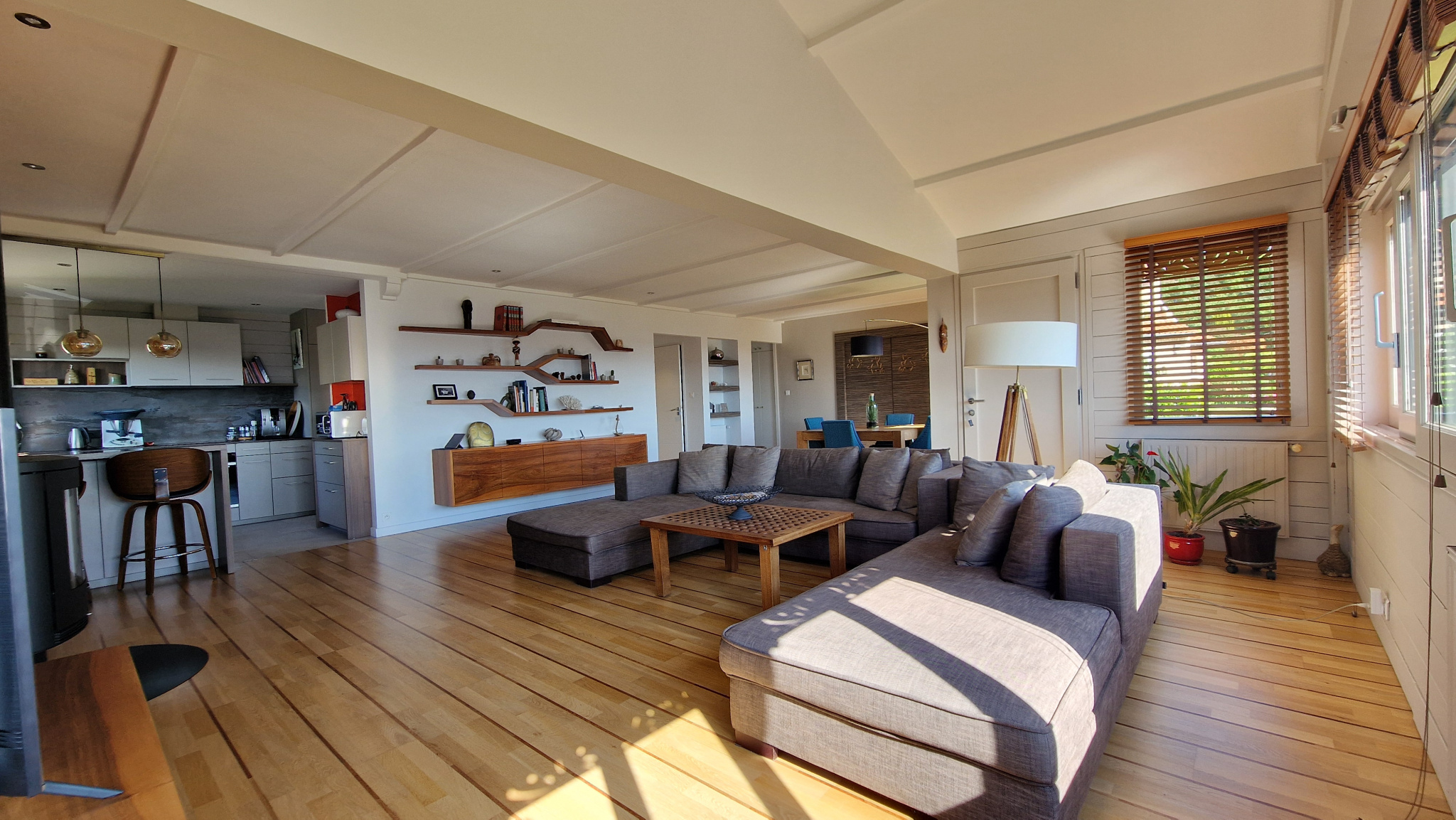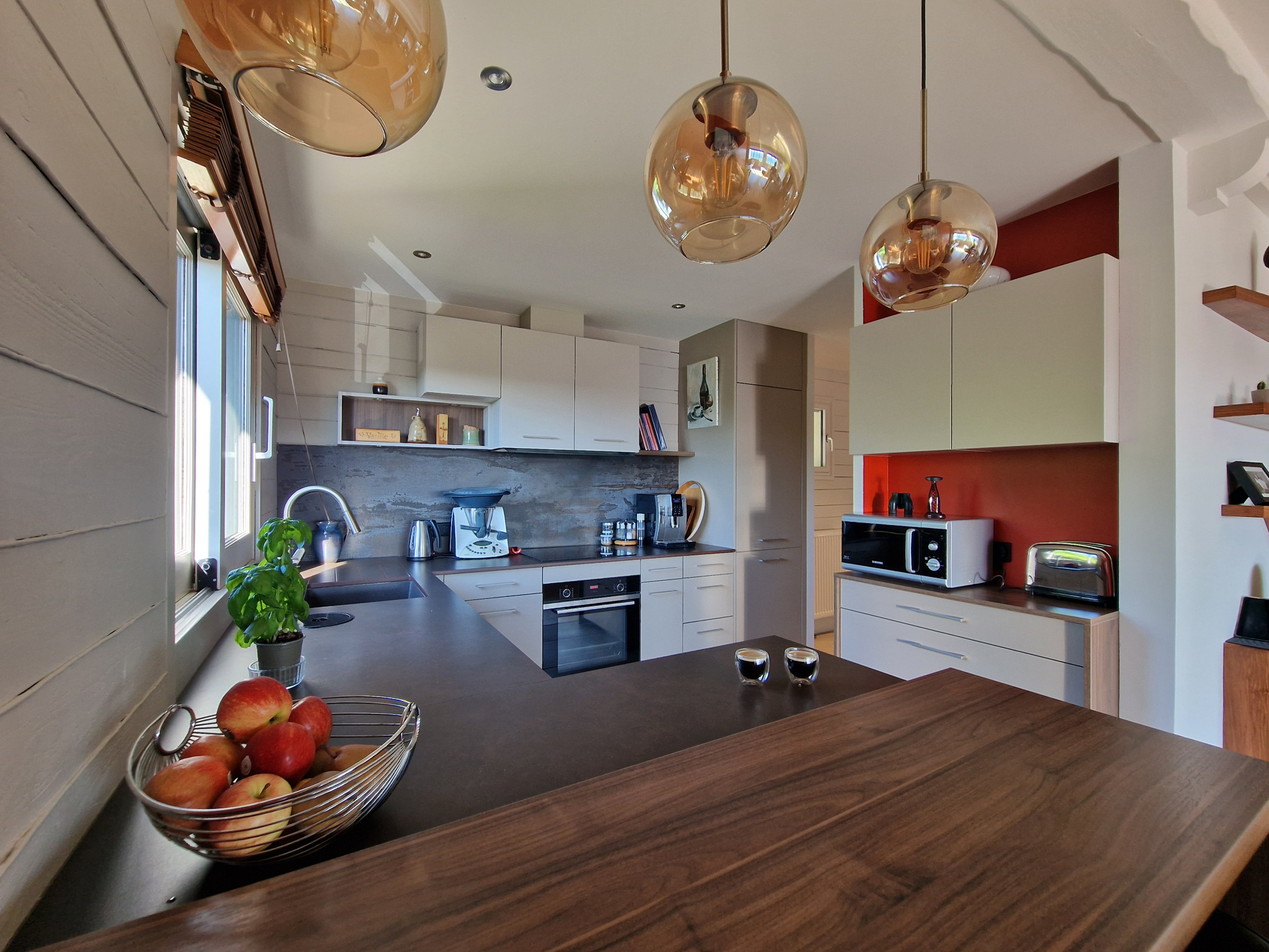 Idéalement orientée Est-Sud-Ouest, lumineuse et offrant un panorama exceptionnel sur le Val de Saône, cette villa de 146 m2 vous séduira immédiatement. Composée d'une superbe pièce de vie de 61 m2 sur vue, avec cuisine ouverte, et accès de plain-pied sur terrasse Ouest et jardin, ce niveau dessert également un bureau, une chambre, une salle de bains, et un wc. A l'étage, un second espace nuit, comprenant une mezzanine, deux chambres et une salle d'eau avec wc. La terrasse au sud-ouest offre une intimité précieuse, et le terrain de boules une seconde vue à couper le souffle. L'aménagement paysagé des extérieurs offre un sentiment de repos et de bien-être. La propriété est en excellent état d'entretien avec des prestations de qualité récentes. Le parquet de la pièce de vie est remarquable, le poêle à bois offre une chaleur douce en complément du confort de la pompe à chaleur. L'environnement résidentiel individuel octroi un calme complet des lieux, une vue dégagée sur le panorama du val de Saône. Pour parfaire le confort, la maison dispose d'un garage de 39 m2, d'un grand espace buanderie et d'une cave. Egalement, un carport pour un stationnement extérieur couvert. Chauffage par pompe à chaleur avec radiateurs. Une maison pleine de charme, de qualités et d'atypisme pour les amateurs de confort, que je vous propose de découvrir avec CD IMMOBILIER SAS à Couzon au mont d'or.