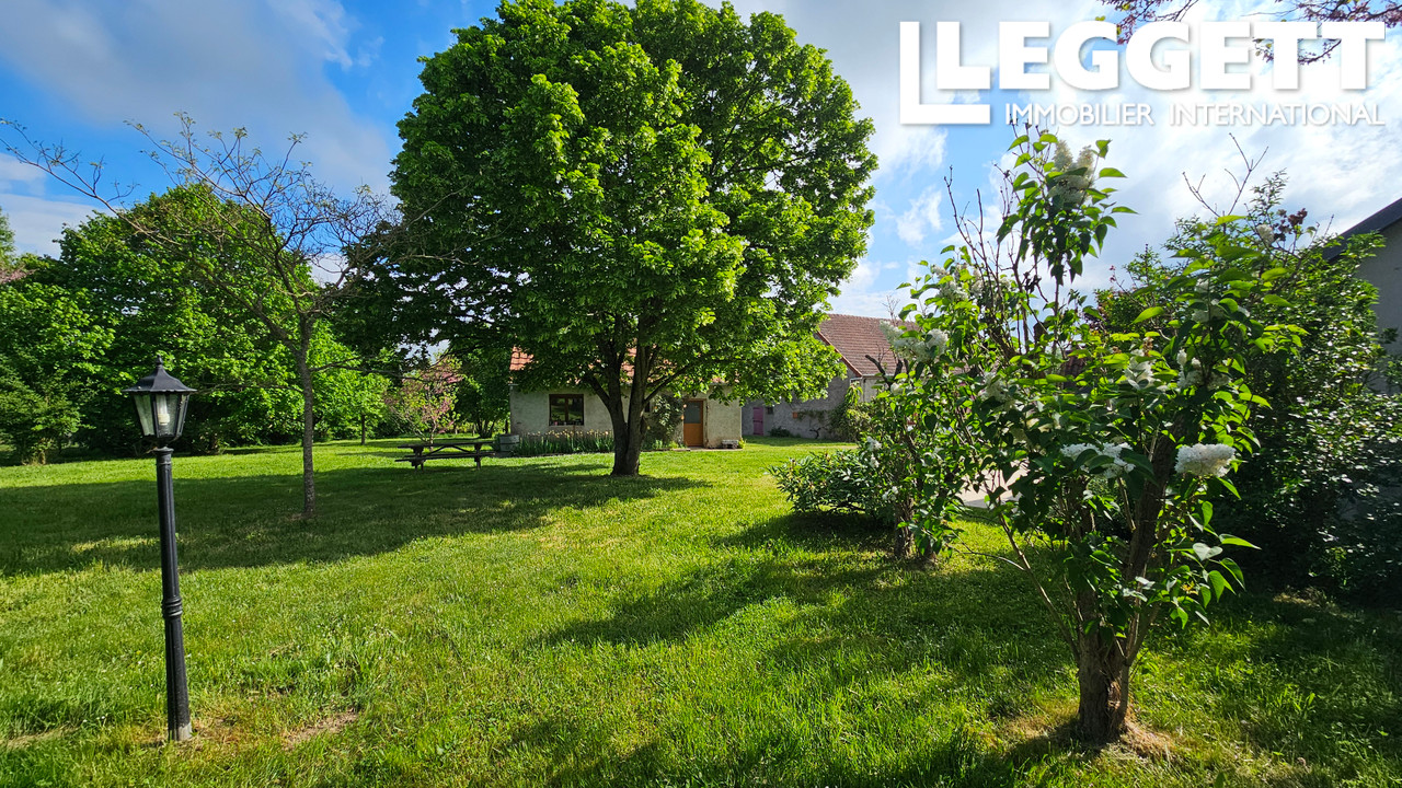 Le jardin entoure la maison, avec arbres matures, potager, petit bois et vue sur la campagne.