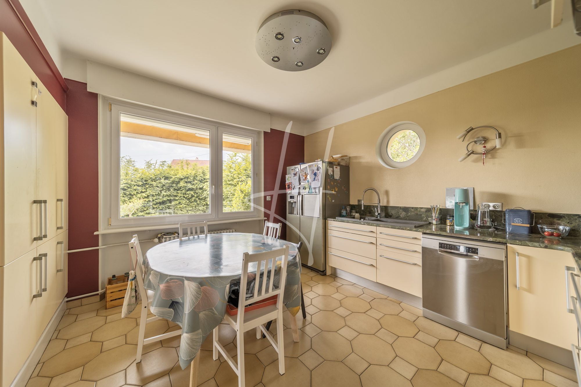 Édifiée en 1958 sur un terrain de 10 ares, la maison de 214m2 s'organise sur deux niveaux d'habitation ainsi qu'un sous-sol. Elle a bénéficié d'une rénovation complète et énergétique, alliant confort moderne et respect de son caractère architectural. Elle offre de vastes espaces de vie, deux chambres au rez-de-chaussée, et quatre autres à l'étage, dont une superbe suite parentale occupant le dernier niveau, avec une grande terrasse panoramique offrant une vue imprenable sur Metz.