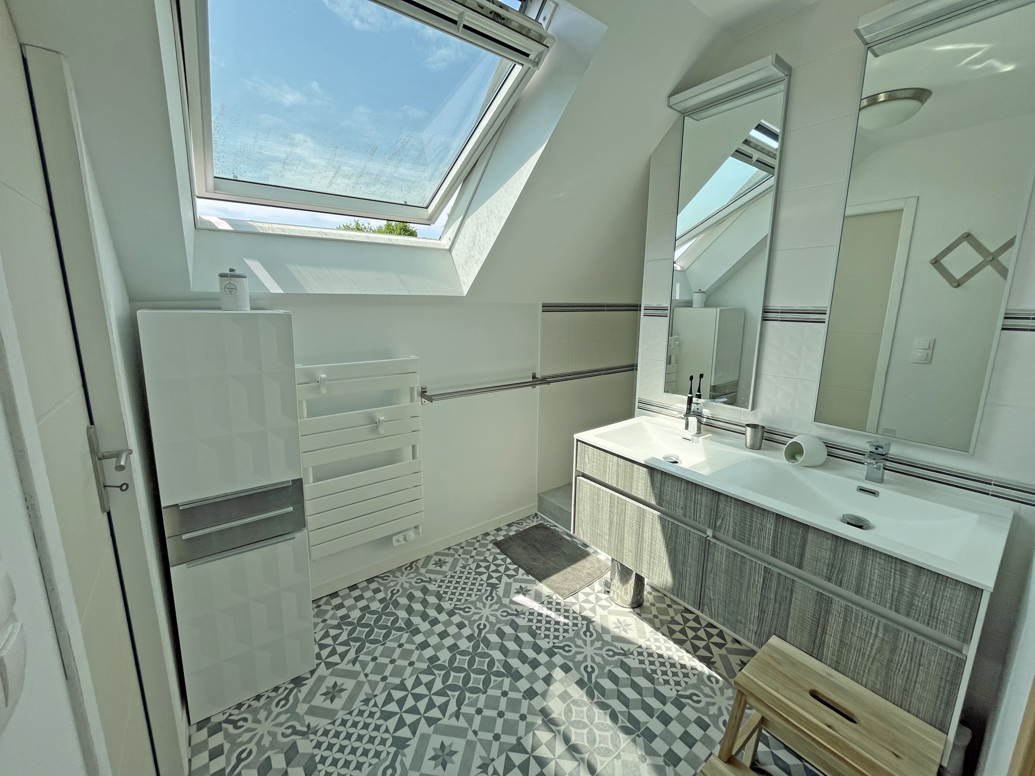 3 chambres dont une au rez-de-chaussée avec salle d'eau + Mezzanine/Bureau à l'étage.