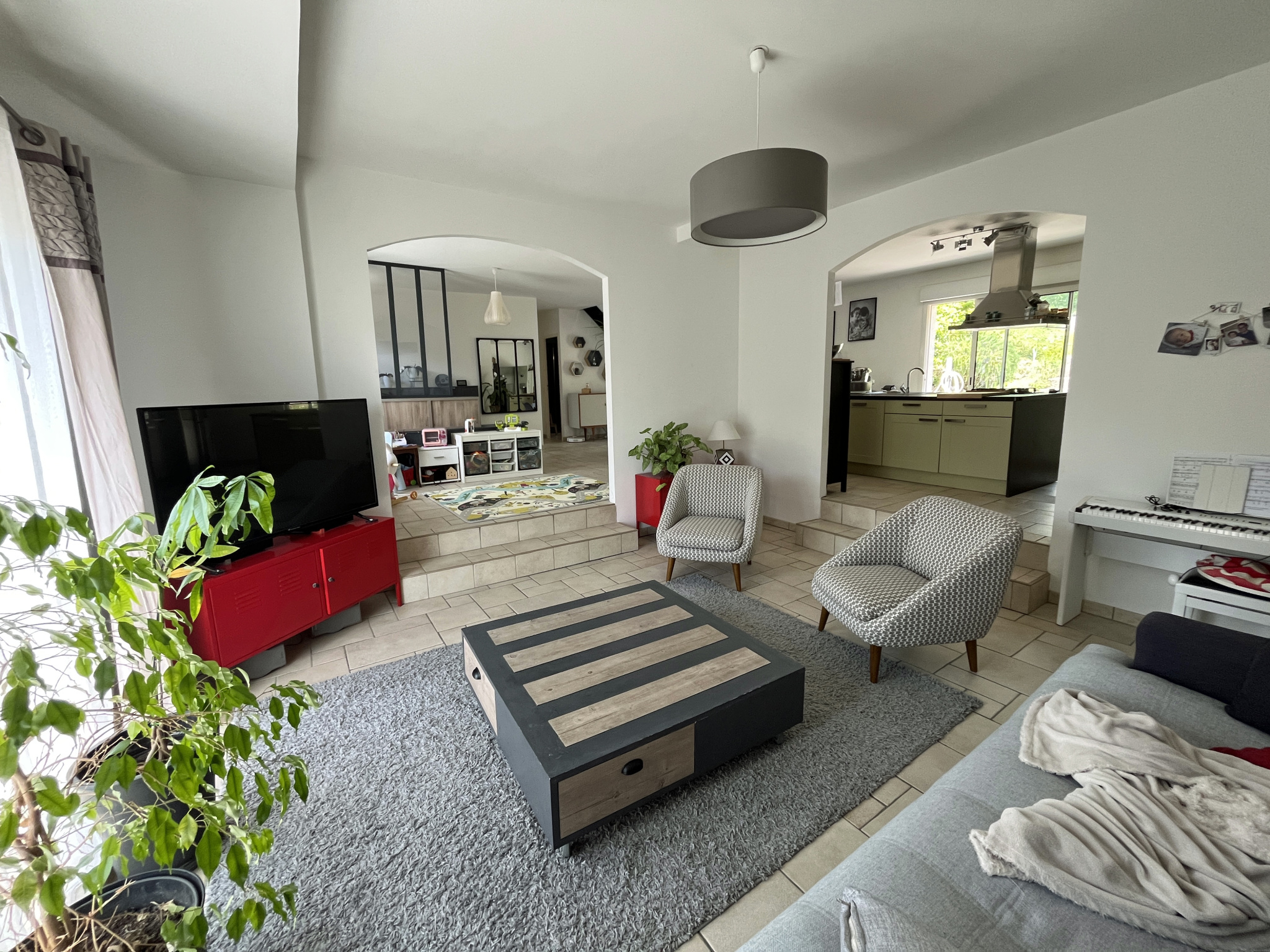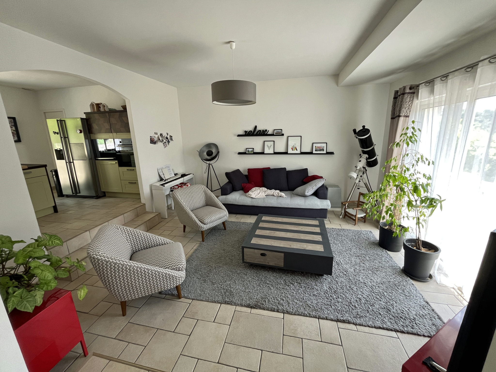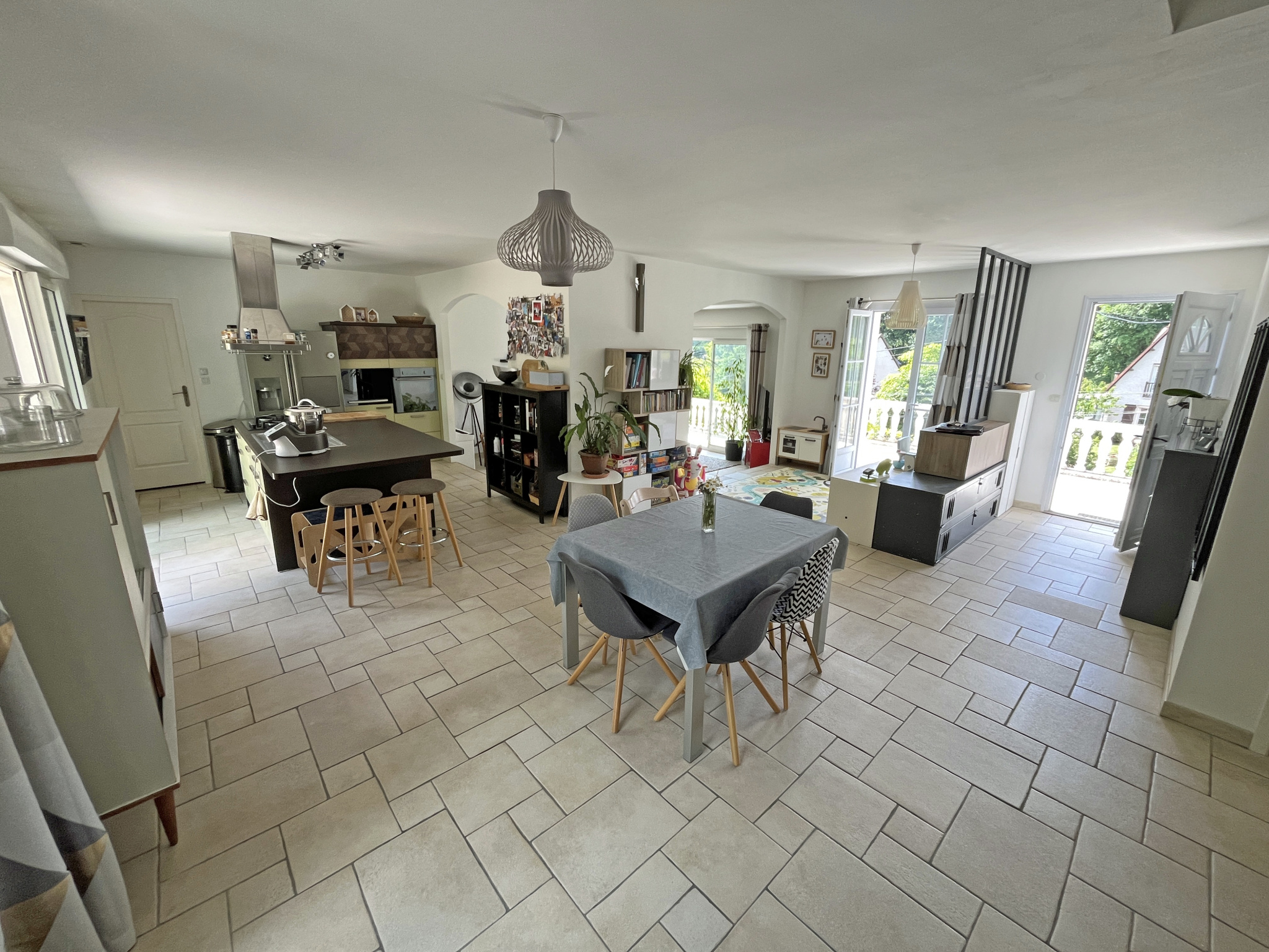 Pièce de vie avec cuisine aménagée et équipée 68 m2.