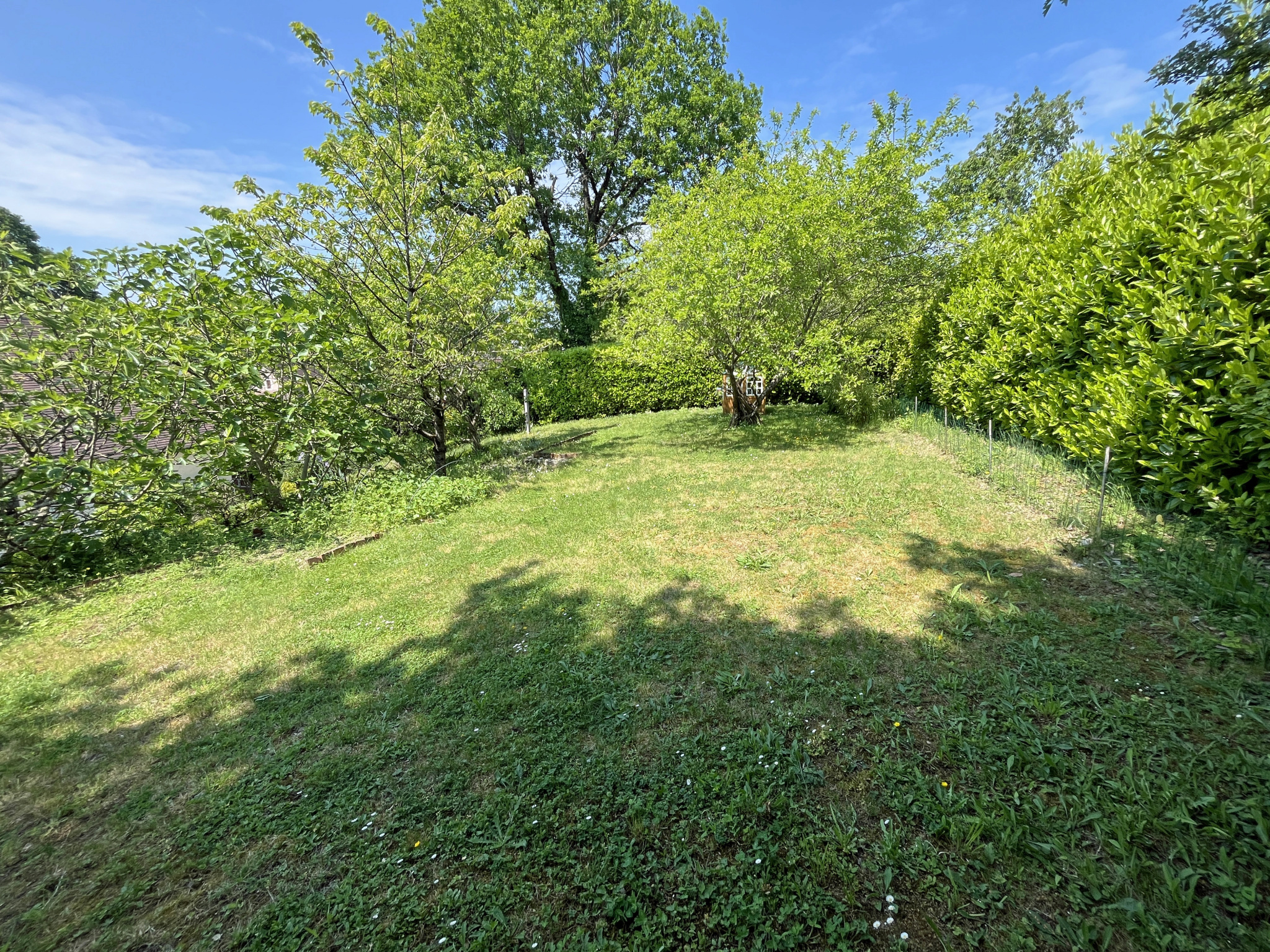 Jardin paysagé 870 M2 entièrement clos et arboré sans vis-à-vis avec terrasses.