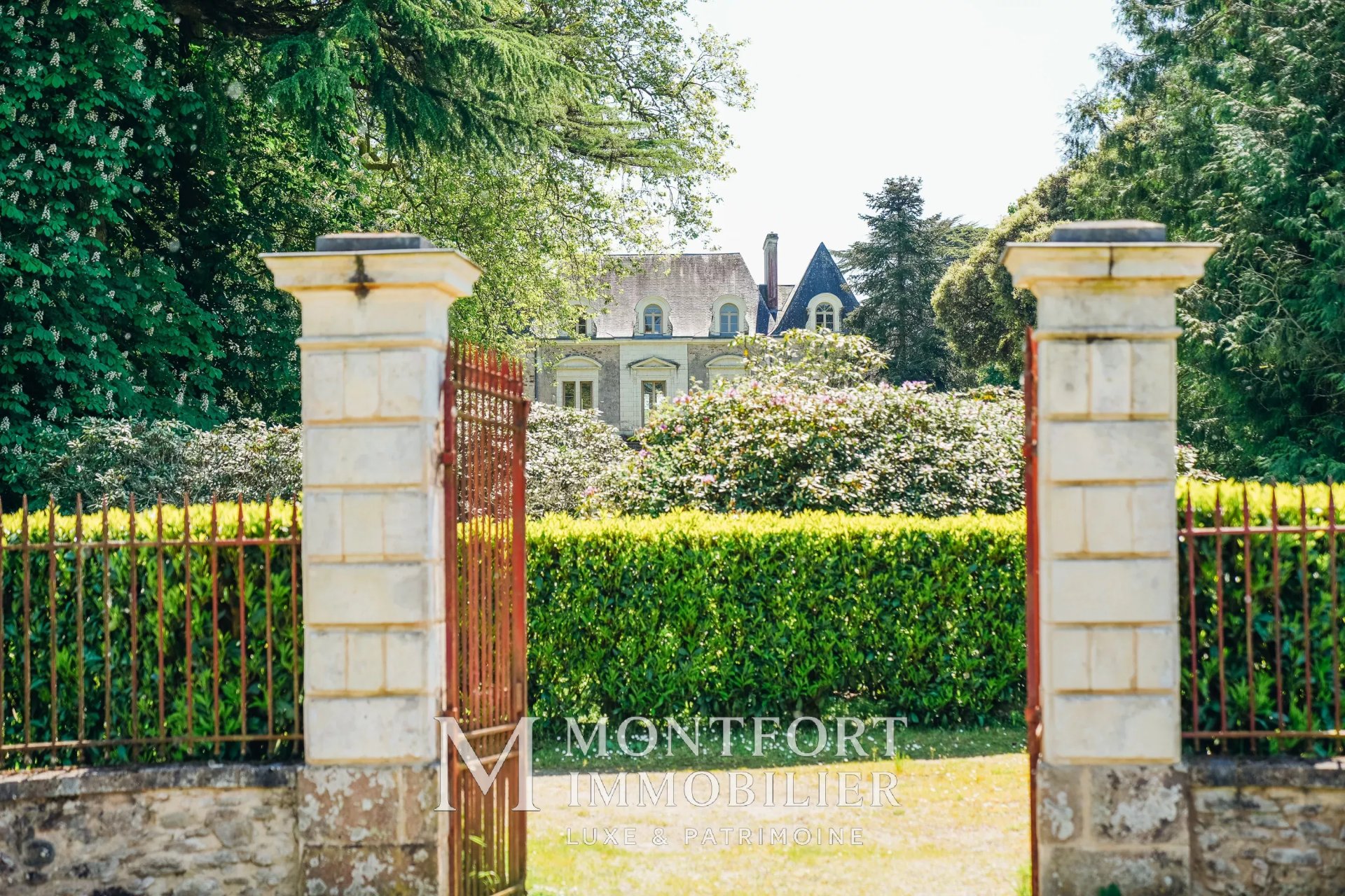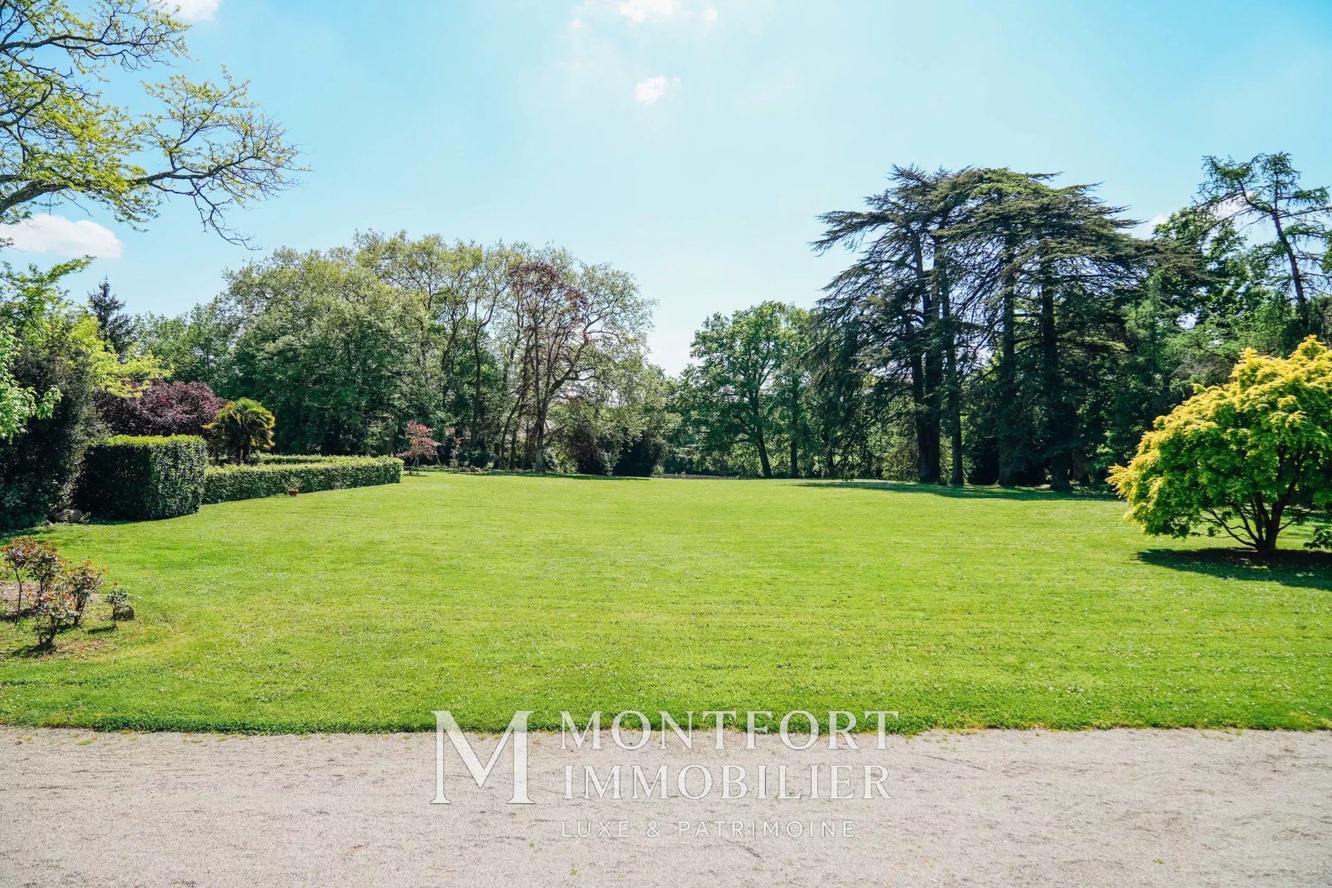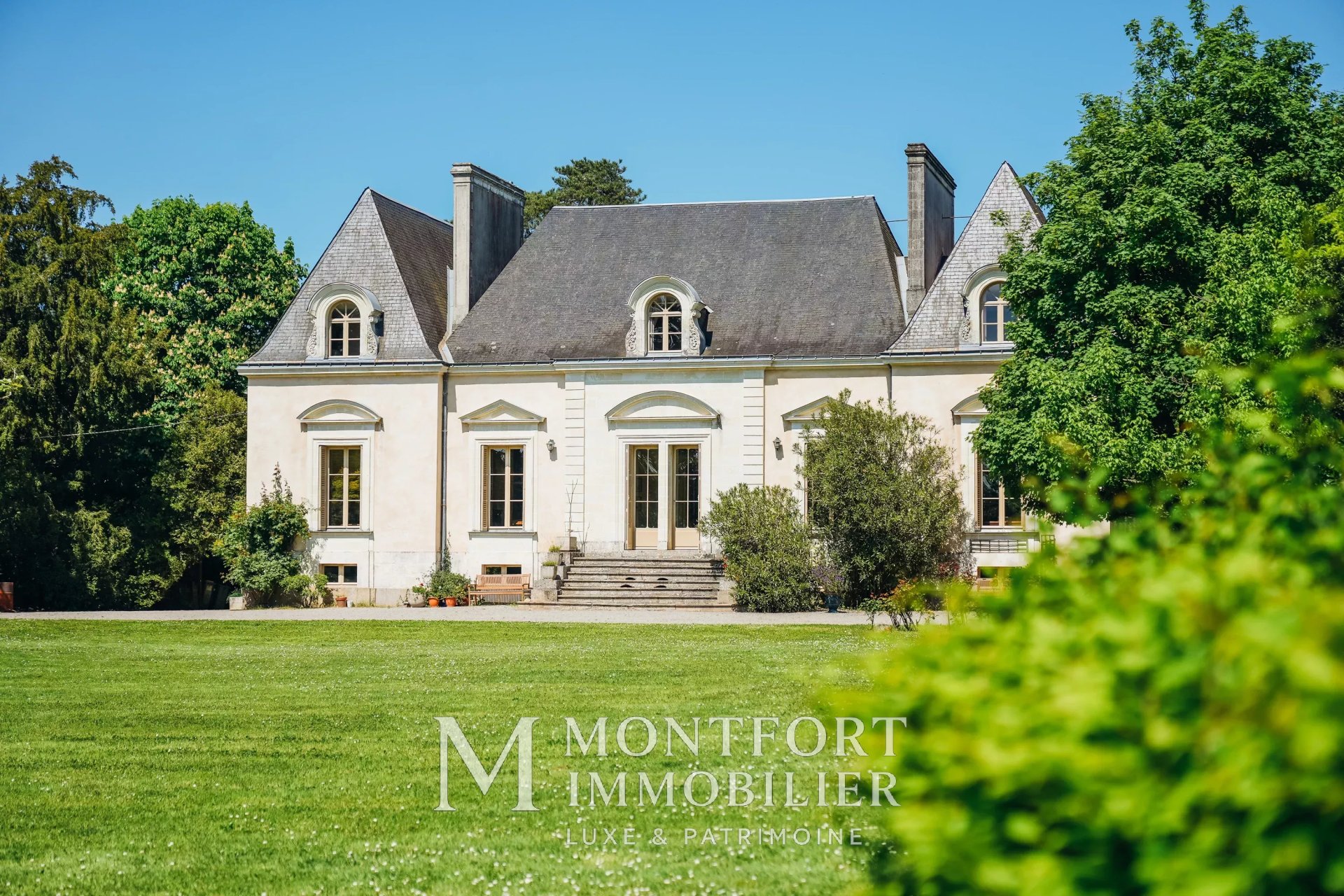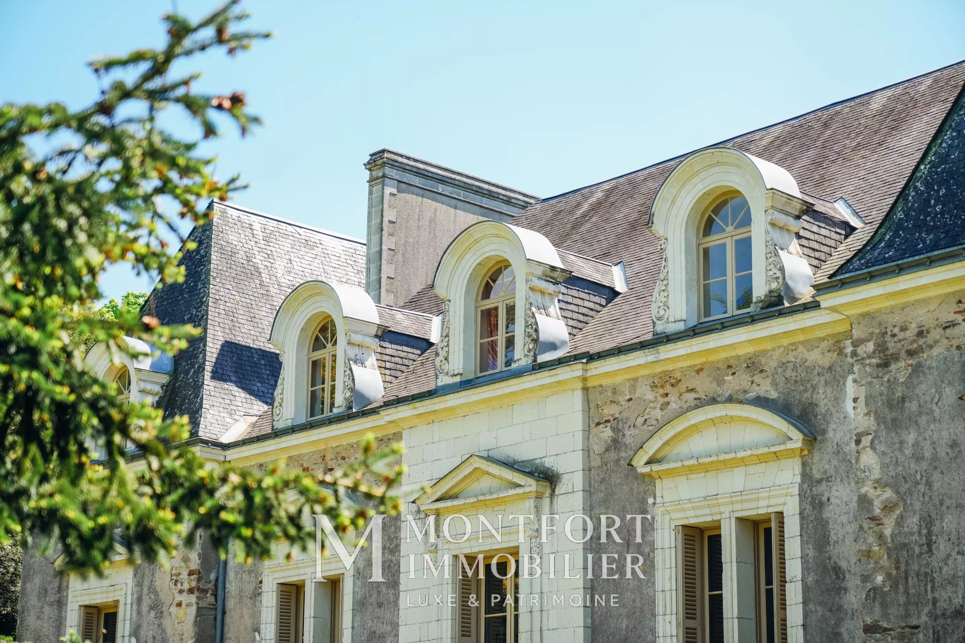 Accessible par deux élégantes allées cavalières remontant le parc depuis les grilles de l’entrée historique côté Loire, ce joyau architectural se découvre au cœur d’un splendide parc arboré de plus de 3,7 hectares, entièrement clos de murs en pierre et agrémenté de nombreuses essences rares et d’arbres centenaires.