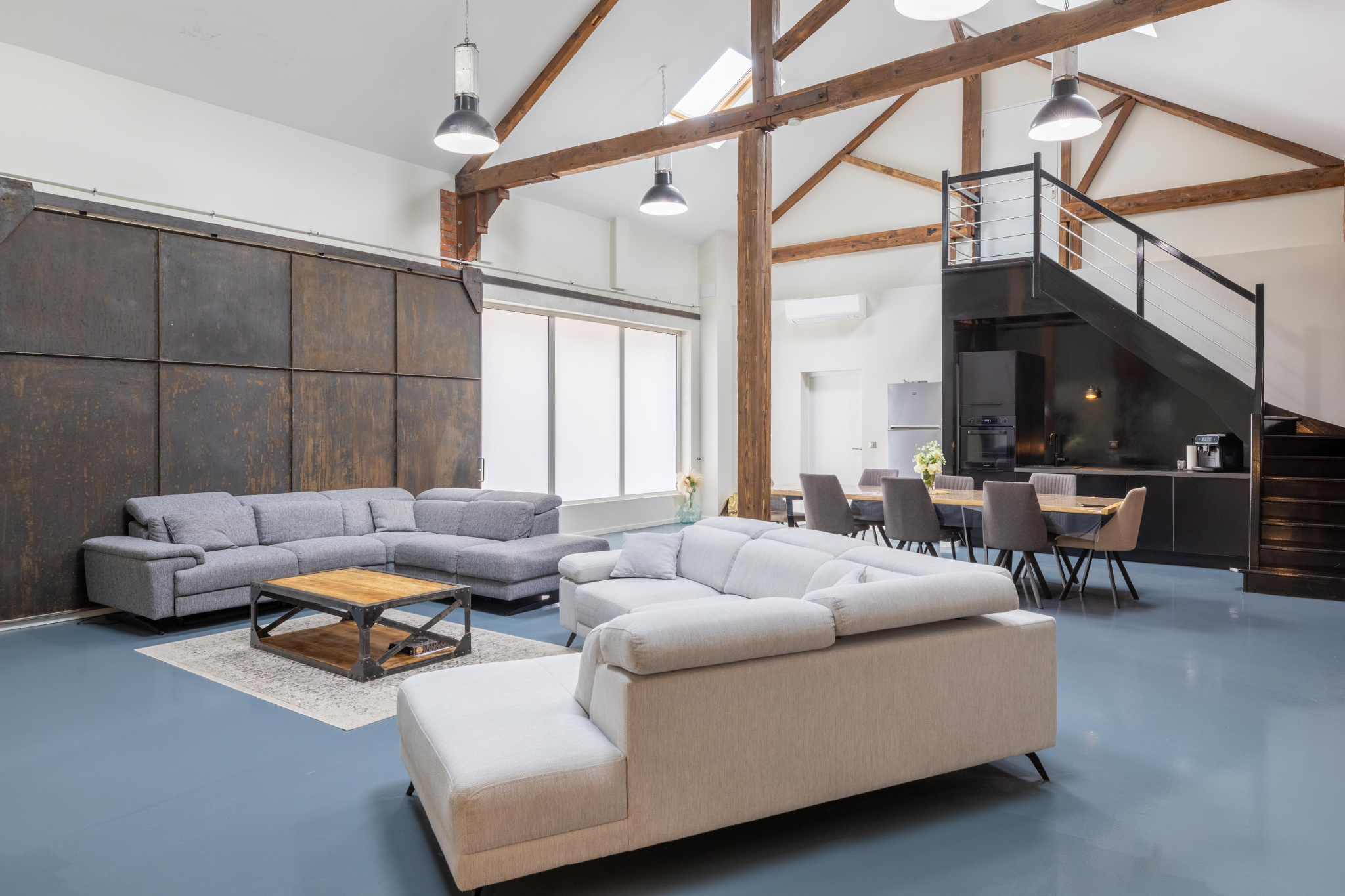 Dès l'entrée, les volumes impressionnent : une pièce de vie de plus de 150 m2 vous accueille, baignée de lumière et ouverte sur un espace de vie hors normes.