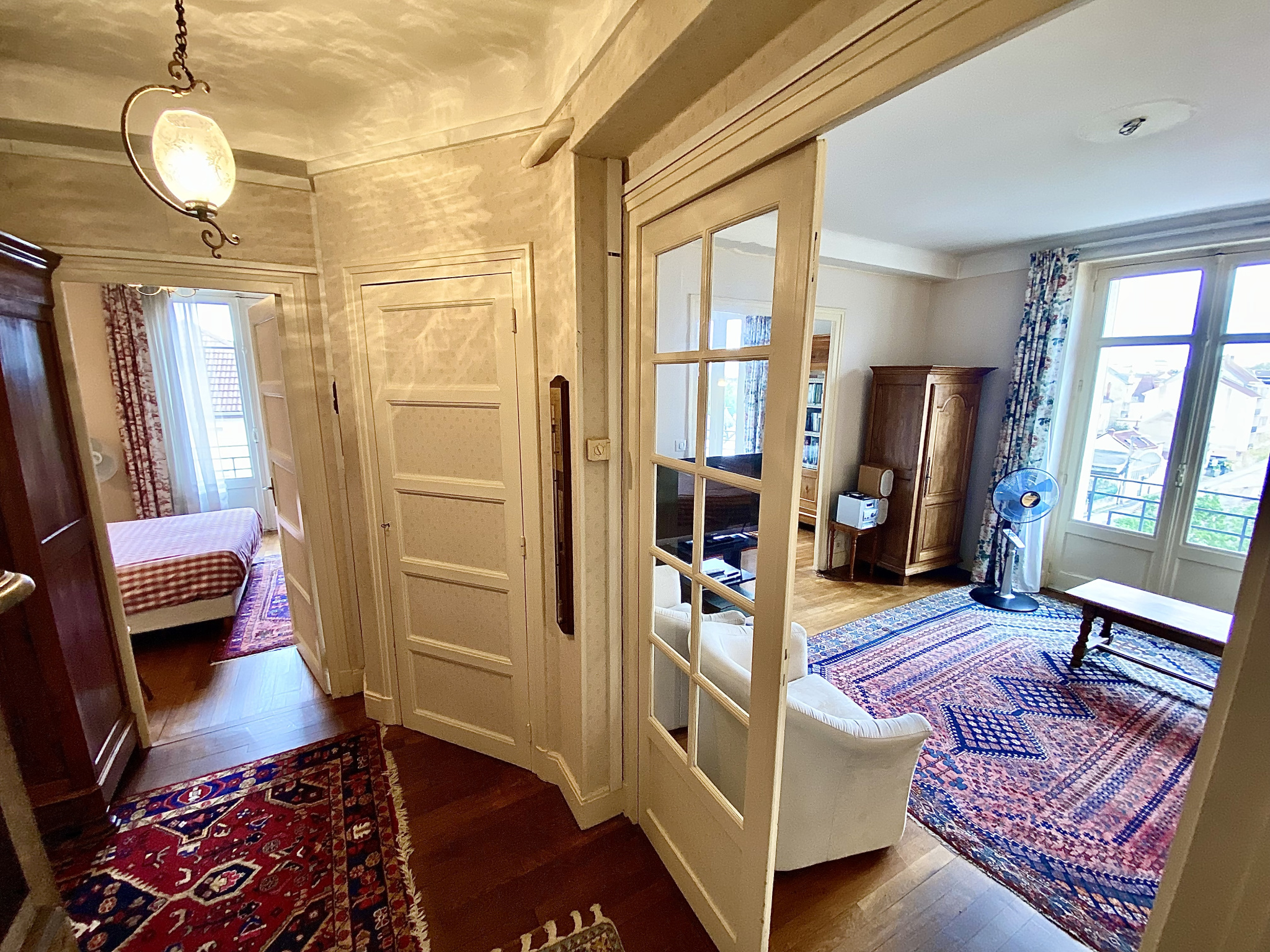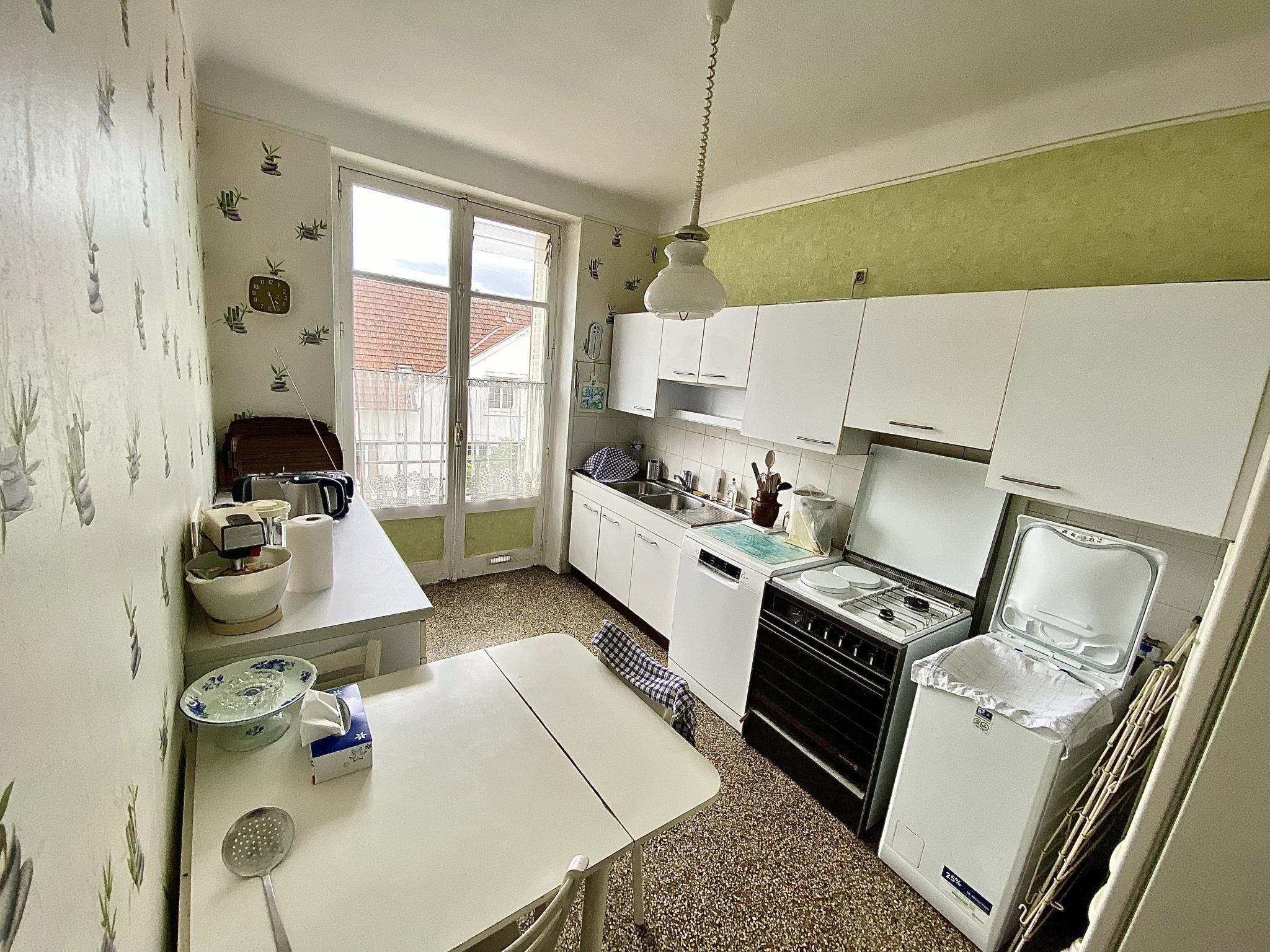 Victor HUGO - MONTCHAPET : Dans bel immeuble des années 30, nous vous proposons cet appartement de type 3 au troisième et dernier étage (sans ascenseur). Il se compose d'une entrée, d'un cellier de rangement, d'un salon-séjour de 30 m2 offrant une jolie vue dégagée (possibilité de créer une seconde chambre), une salle de bains avec fenêtre, une grande chambre ( 15 m2 ) et une cuisine séparée. Appartement très lumineux avec une bonne disposition de pièces. Il dispose d'une cave et d'un grenier. Des travaux de rafraîchissement sont à prévoir. DPE : E (nouvelle version) Montant estimé des dépenses annuelles d'énergie pour un usage standard : entre 1851 EUR et 2505 EUR par an. Prix des énergies indexés au 1er janvier 2021, 22 et 23 (abonnement compris). , Mandat no 779, Copropriété de 8 lots, Charges annuelles de copropriété : 1340 EUR environ. Pas de procédure en cours (art 29-1 et 29-1-A), honoraires charge vendeur. Les informations sur les risques auxquels ce bien est exposé sont disponibles sur www.georisques.gouv.fr