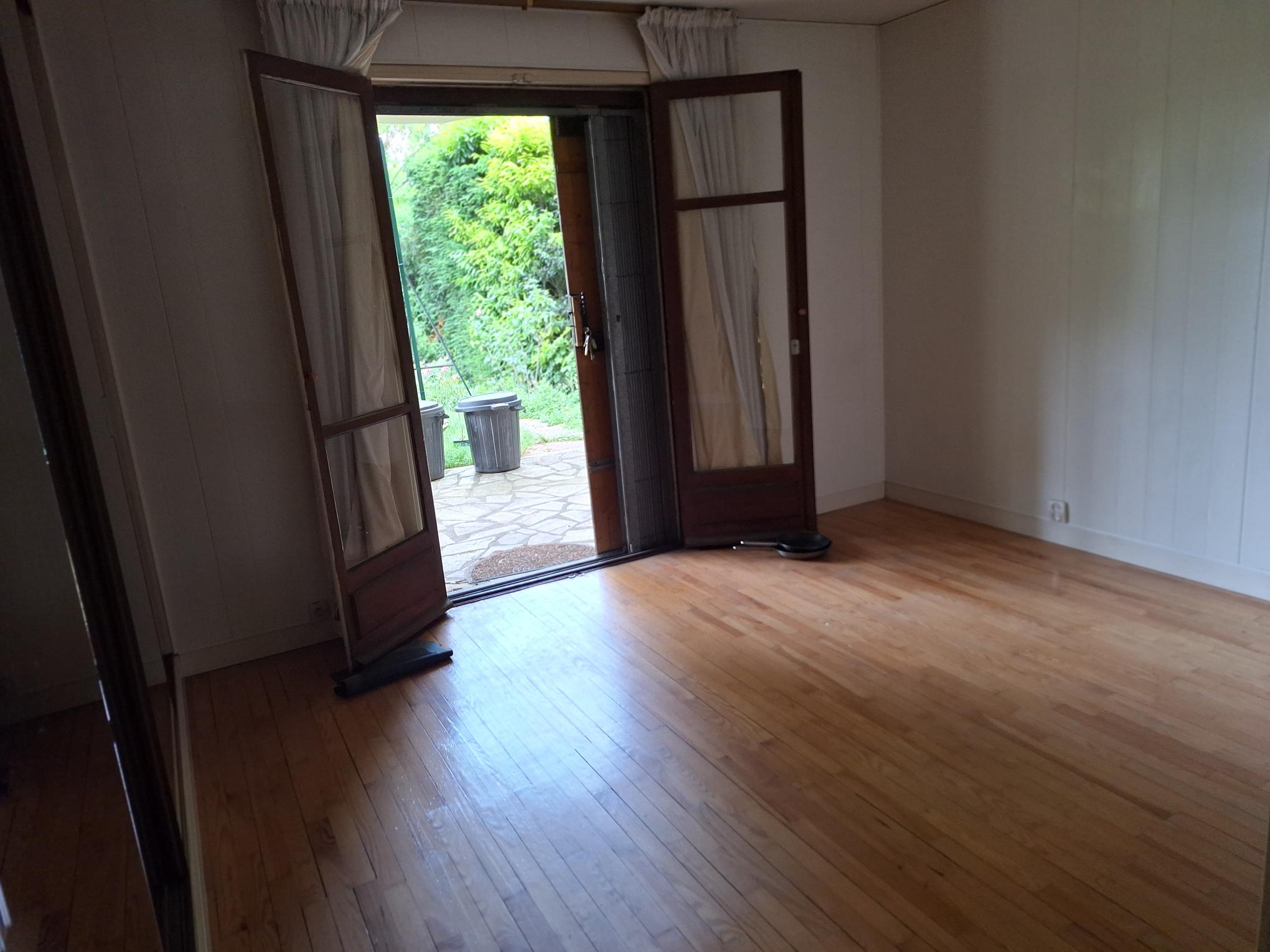 un double séjour avec véranda d'une surface totale de 55 m2 ouvrant sur le jardin avec avec vue dégagée, une cuisine indépendante, trois chambres, un bureau et un WC séparé.