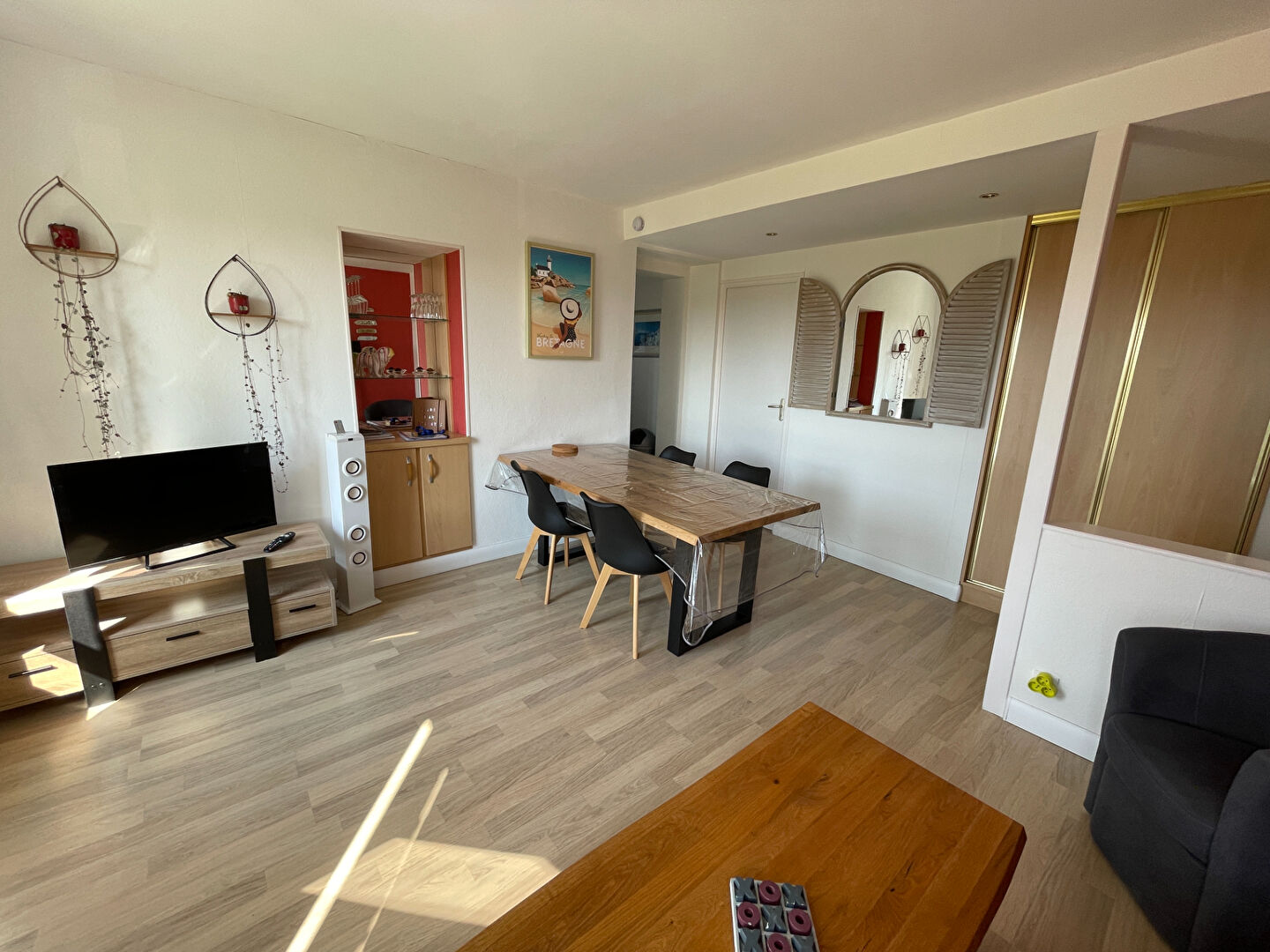 Venez découvrir ce très beau trois pièces avec une place de stationnement privative, à proximité de la plage du Trez et des restaurants.