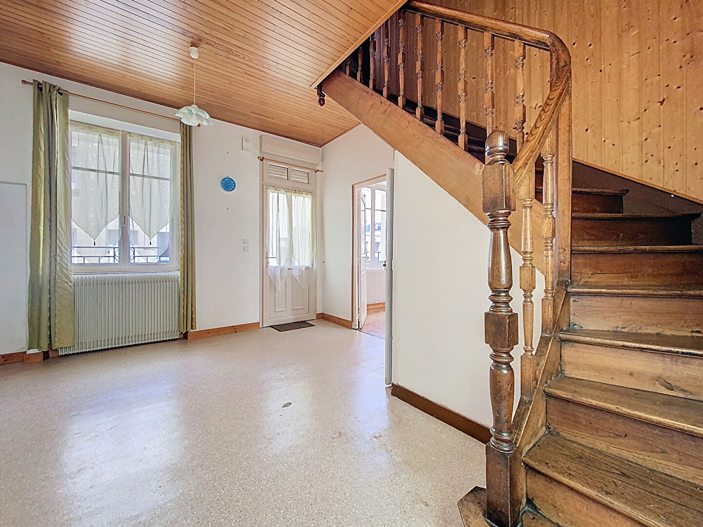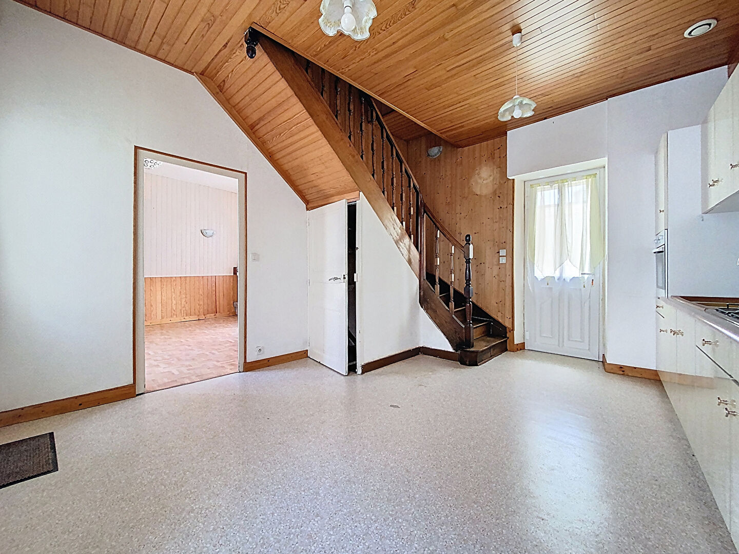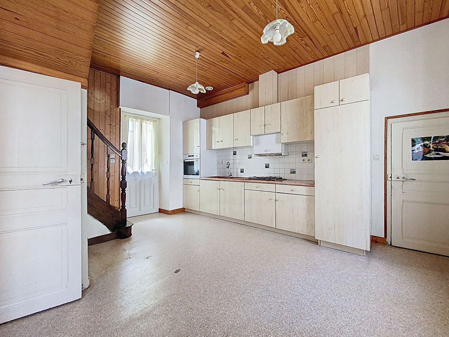 - Au rez-de-chaussée : pièce de vie, cuisine, buanderie, WC