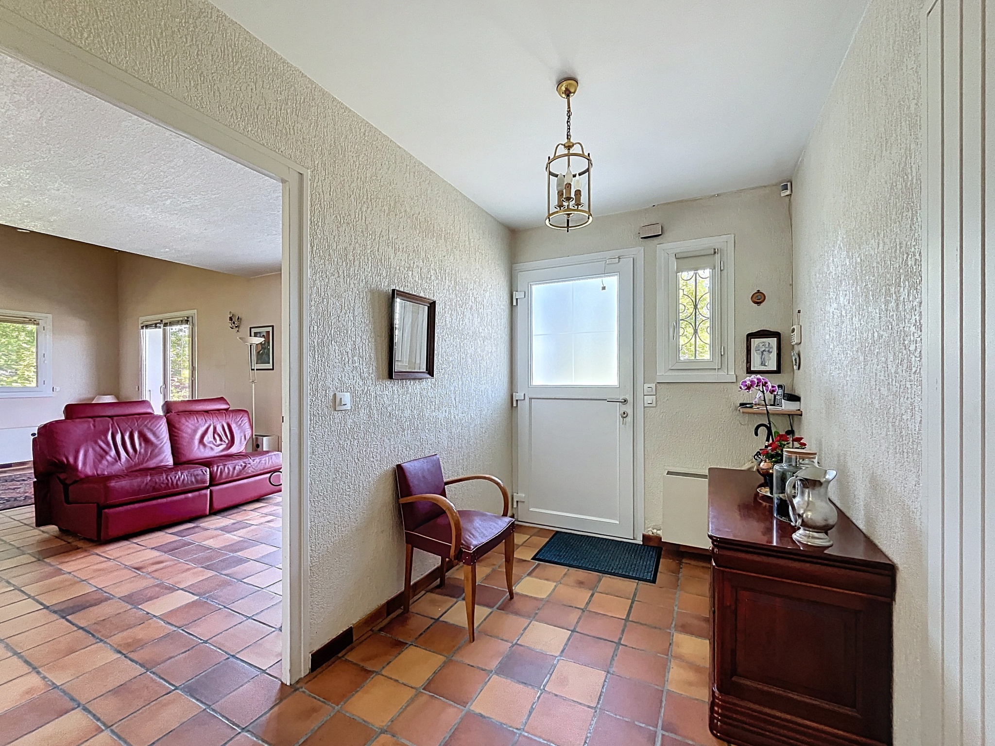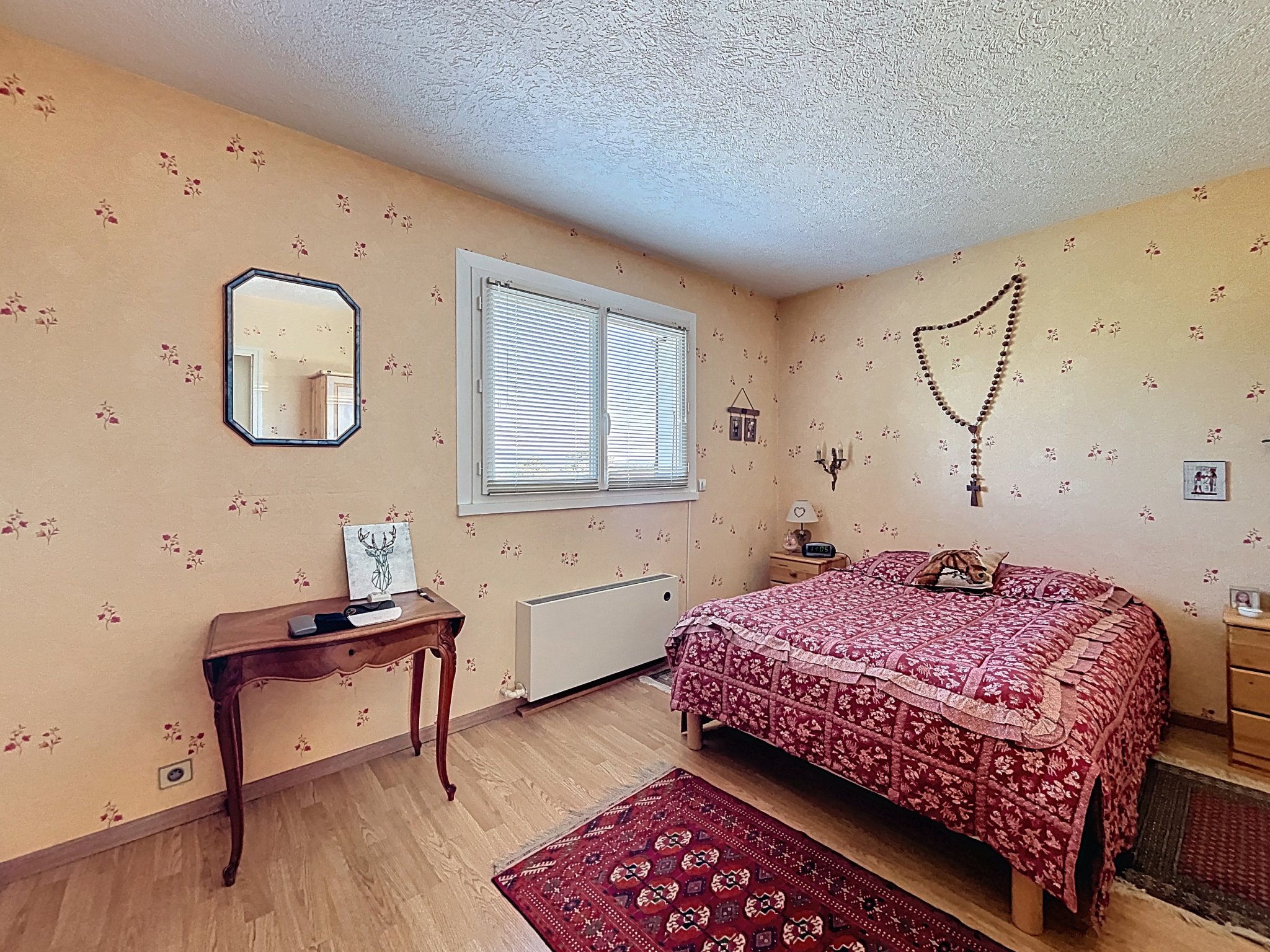 La maison se compose d'une spacieuse pièce de vie chaleureuse, d'une cuisine indépendante, de trois chambres avec la possibilité d'en créer une quatrième, d'une mezzanine pouvant accueillir un bureau ou un espace détente, de deux salles de bains et de deux WC. Le bien comprend également un grand garage ainsi qu'un carport, un sous-sol et une cave