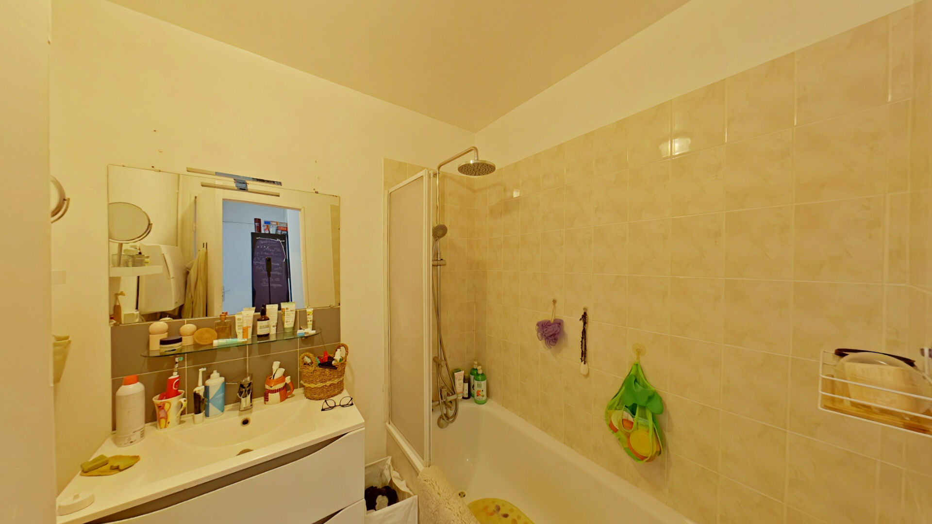 Celui-ci se compose d'une entrée donnant sur le salon séjour avec accès direct à la terrasse et au jardin privatif, une cuisine séparée aménagée et équipée.
