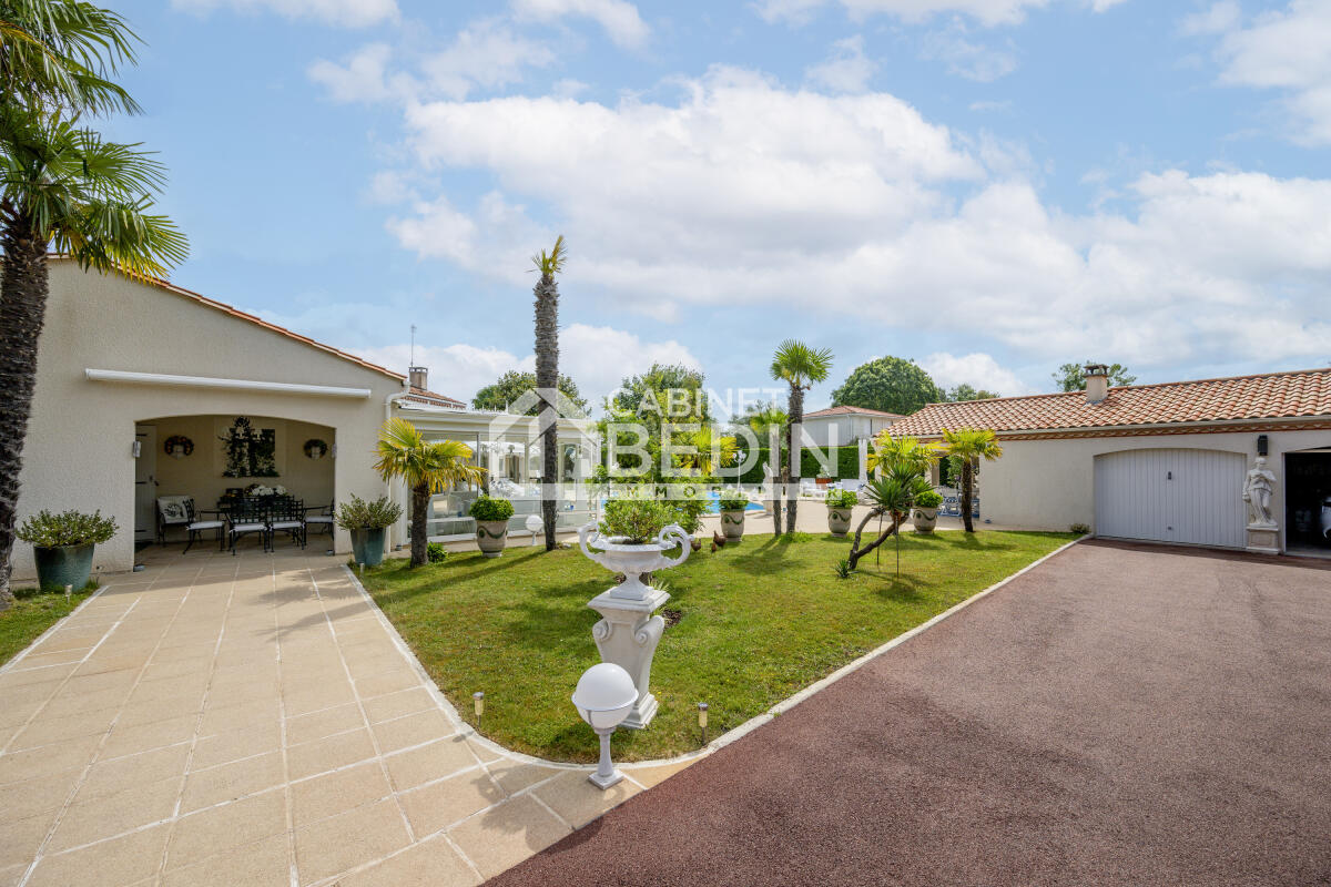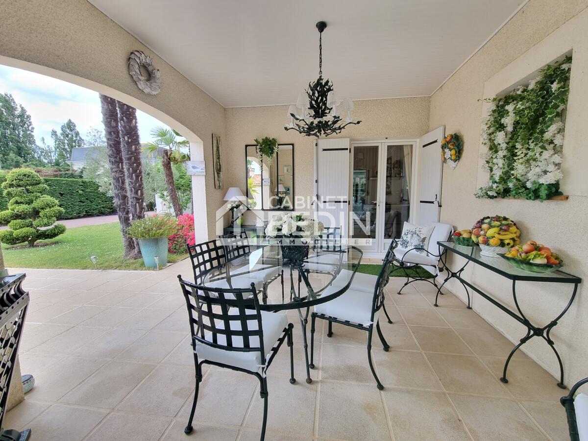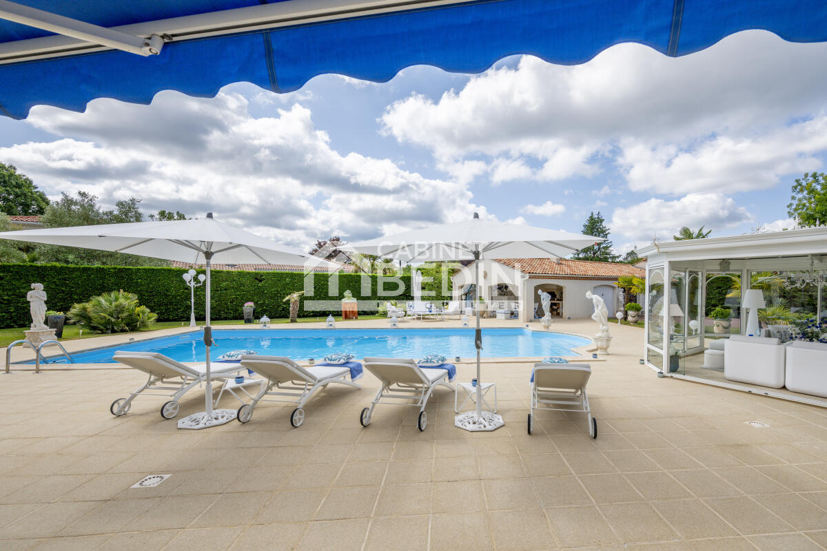 PESSAC CAP DE BOS. Située en seconde ligne au calme absolu au sein d'une grande parcelle avec piscine, dépendances et jardin paysager, nous vous invitons à découvrir cette maison de plain-pied de standing remplie de charme aux prestations de qualité.