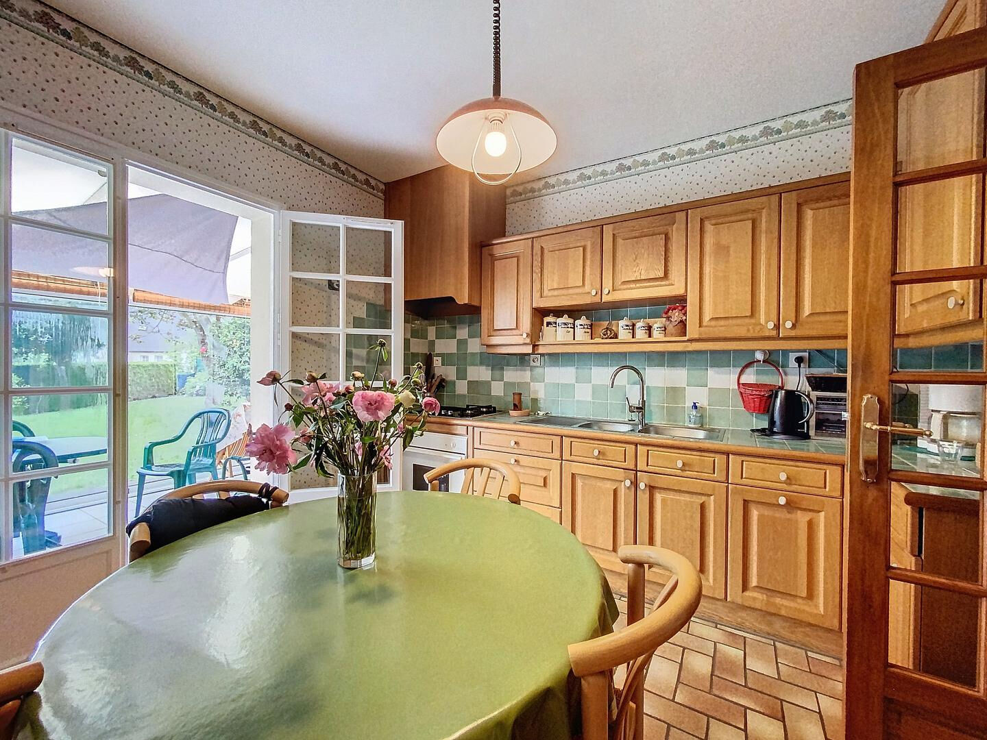 - Au rez-de-chaussée, vous trouverez un salon-séjour, une cuisine indépendante aménagée et équipée,