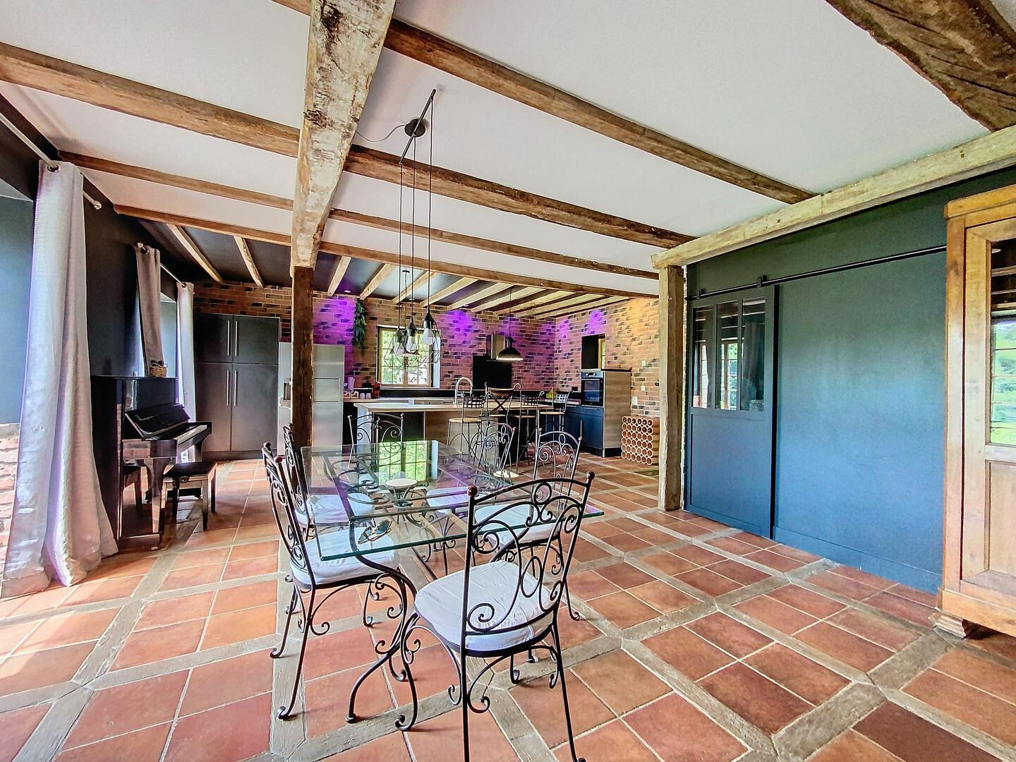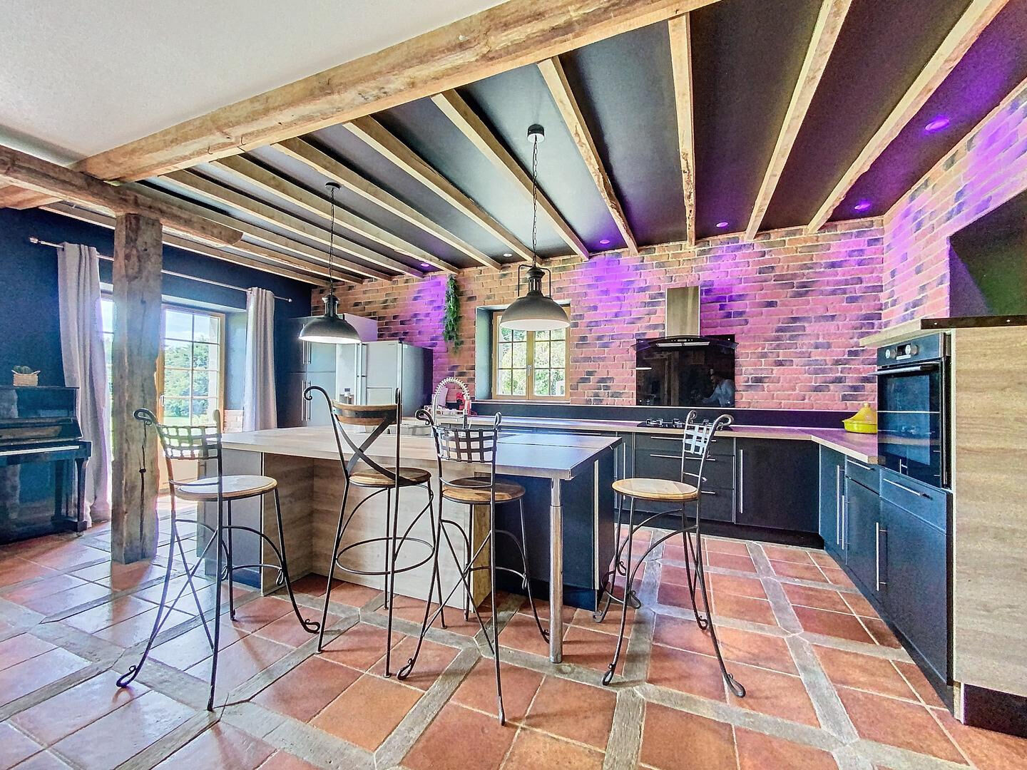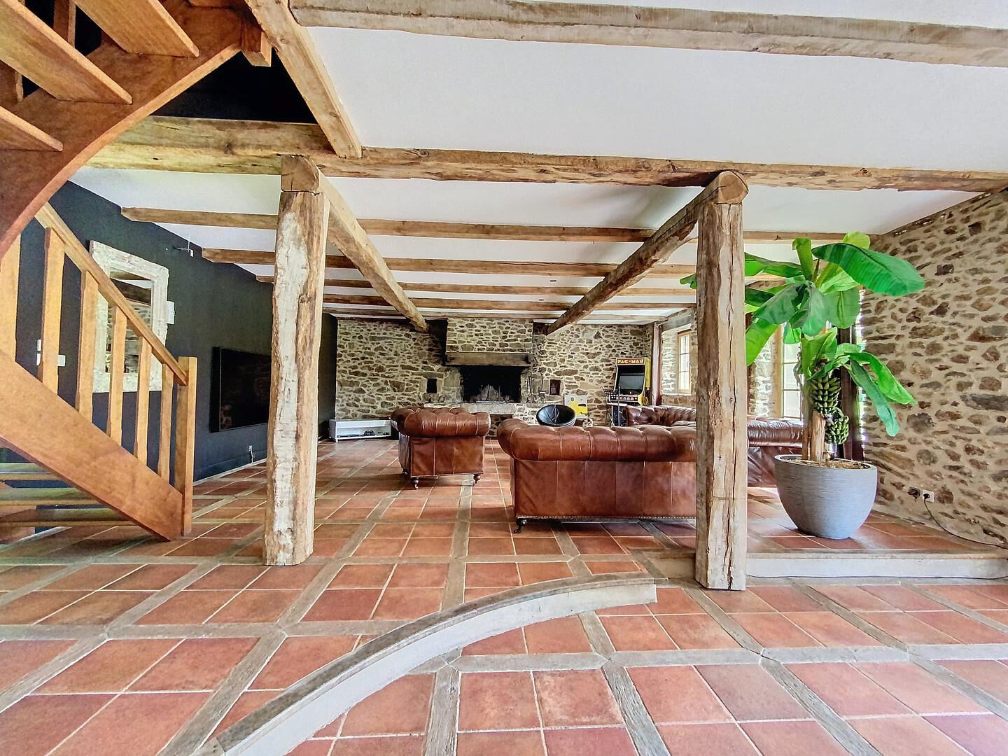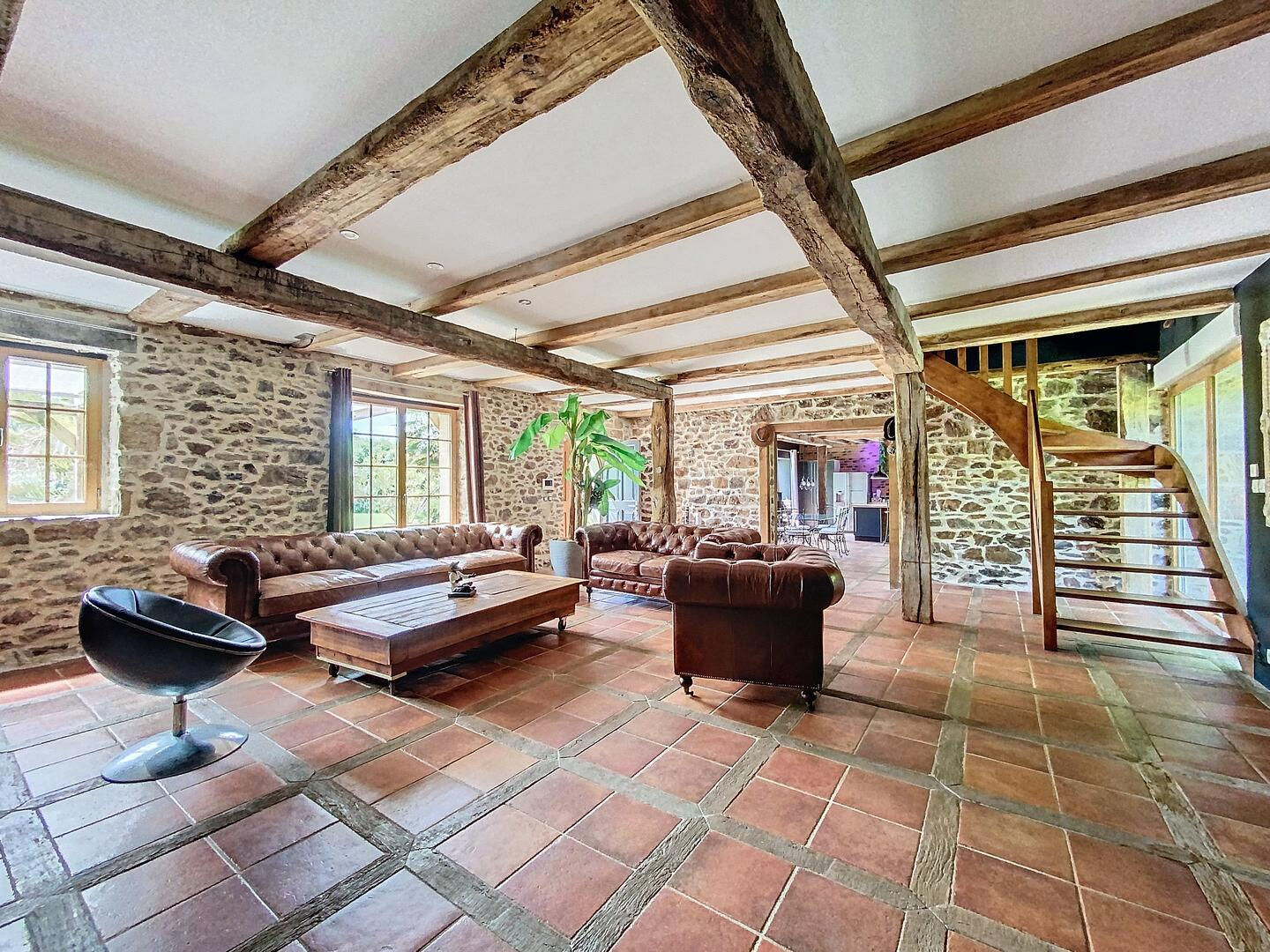 Au rez-de-chaussée, la maison comprend un très vaste salon avec cheminée ouverte, une salle à manger, une grande cuisine moderne, une buanderie et un WC. Le chauffage au sol est assuré par une pompe à chaleur.