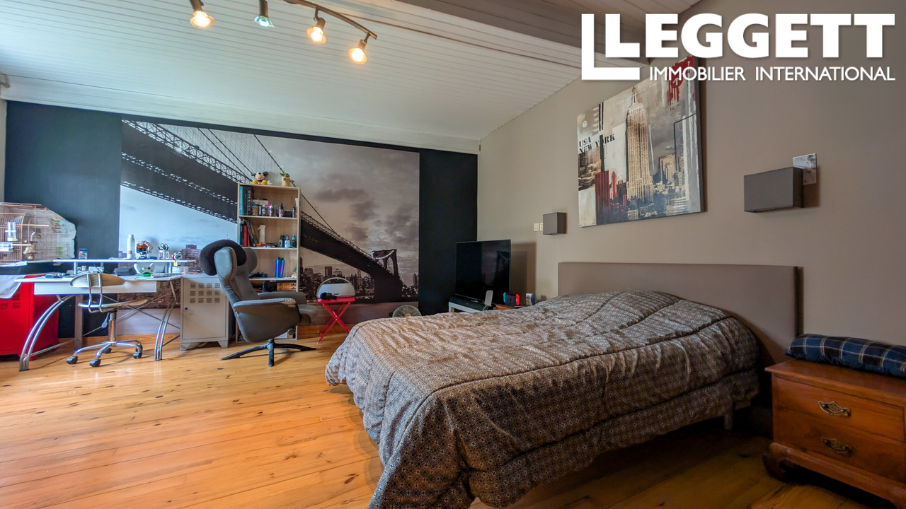 Au RDC : grande entrée avec ancien four à pain, salon cosy avec parquet massif, cuisine équipée/salle à manger avec insert bois, WC et buanderie. À l'étage : deux grandes chambres avec dressing, un bureau, une salle de bain avec baignoire et double vasque.