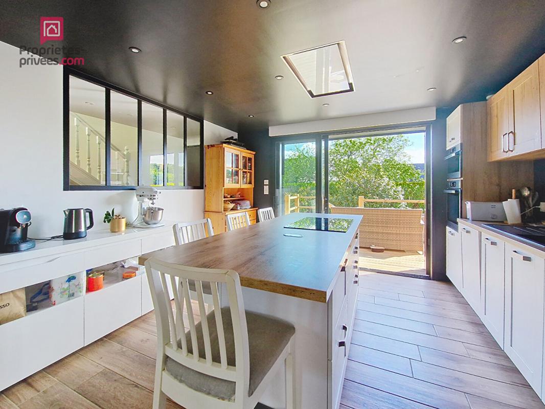 Dès l'entrée, vous serez accueilli par une agréable terrasse surélevée exposée plein sud. L'intérieur s'ouvre sur une belle entrée menant à un vaste salon-séjour lumineux et convivial, agrémenté d'un poêle à bois chaleureux. La cuisine, récente, aménagée et entièrement équipée, s'ouvre directement sur la grande terrasse et son espace extérieur.