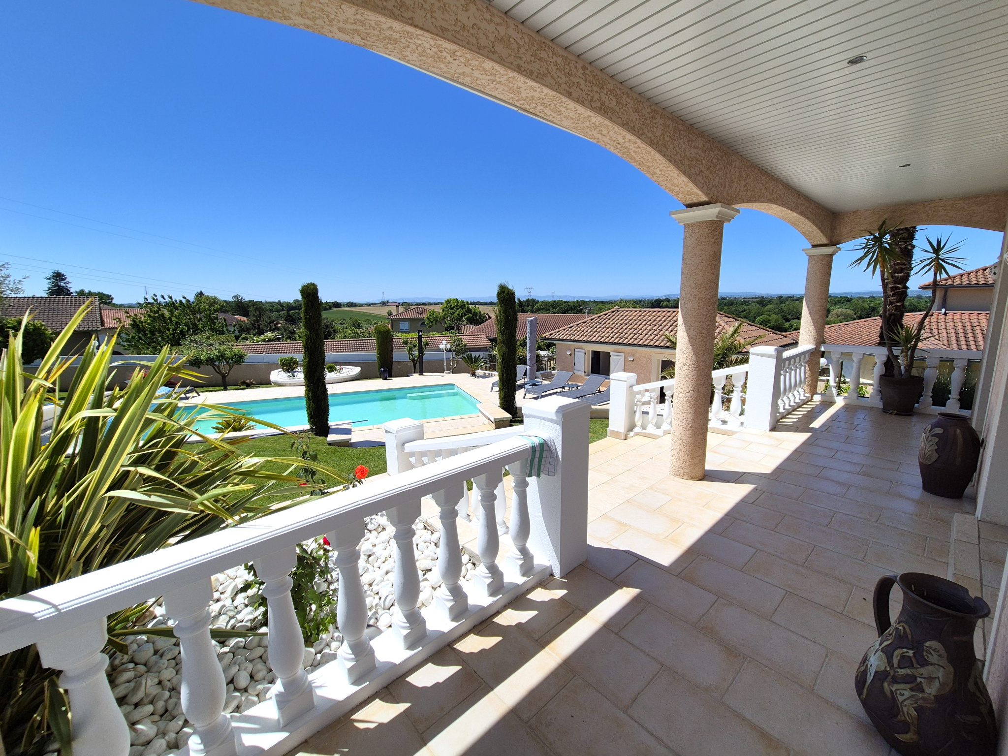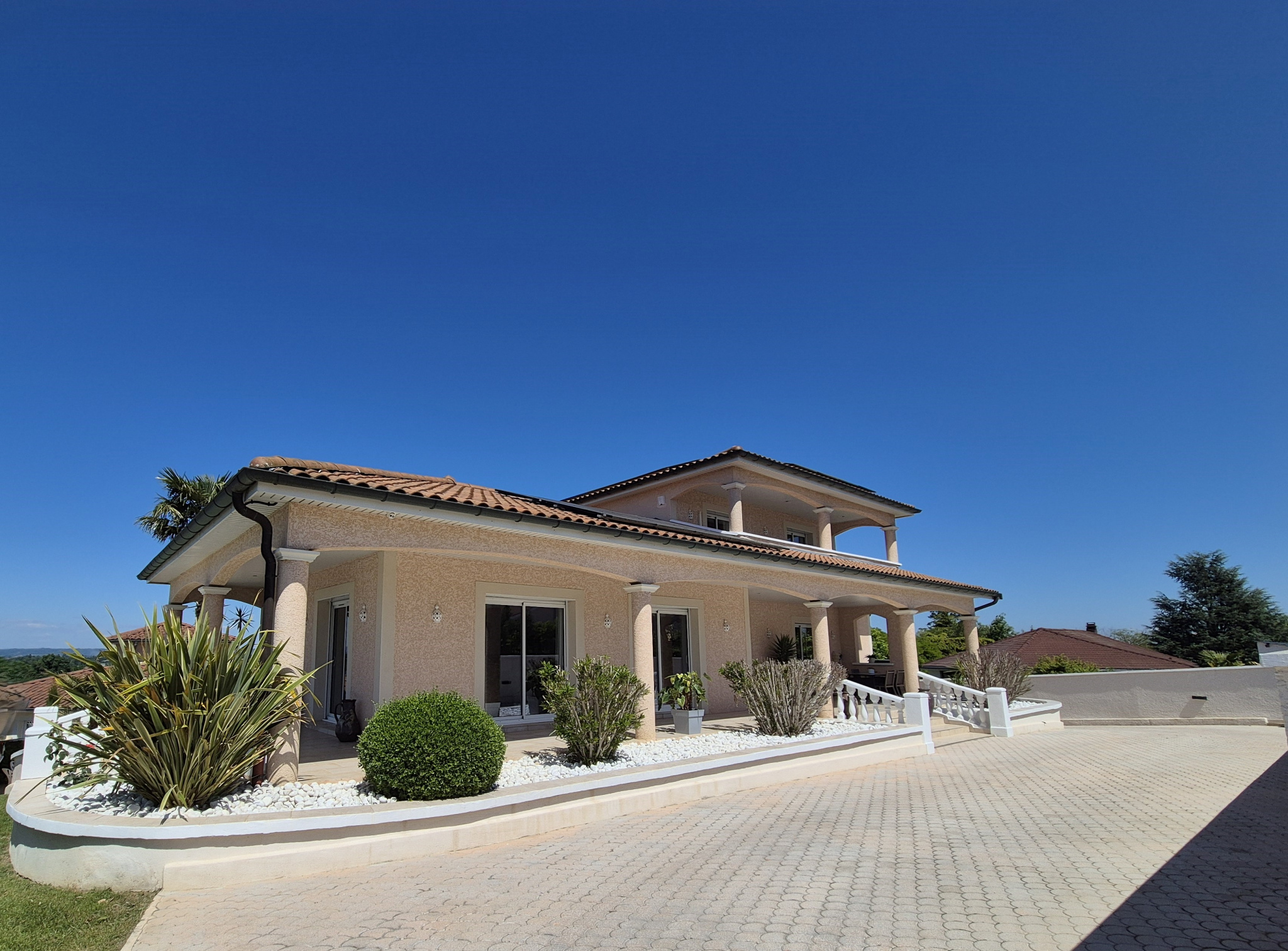 Sur les hauteurs de Villette d'Anthon, je vous présente cette villa magnifique de 232 m2 habitables + un studio de 27 m2. La villa se compose d'une partie plain-pied comprenant une belle entrée, séjour-salon en triple exposition de 55 m2, cuisine toute équipée donnant sur une terrasse couverte, un cellier attenant, deux chambres, une salle de bain et une salle d'eau avec placard et un meuble sous-vasque, un wc séparé. A l'étage deux belles chambres, équipées de grands placards muraux, de la climatisation, donnant toutes les 2 sur un balcon carrelé, ainsi qu'un bureau, une salle de bain avec douche et baignoire, un wc séparé. Le sous-sol complet aménagé offre de beaux espaces dont le garage double carrelé avec portes motorisées + une borne pour un véhicule électrique. Salle de billard avec bar, une buanderie, dressing, plusieurs espaces de rangement, une cave, salle de sport, atelier stockage matériel, salle d'eau et wc. Sur un terrain clos et paysagé de 1420 m2 sécurisé par un portail électrique, une belle piscine et son pool-house aménagé en studio avec salle d'eau et cuisine équipée. Une grande cour pavée permet d'accueillir de nombreux véhicules. De belles presations, ( PAC, climatisation, panneaux solaires, aspiration centralisée, puit ) une vue dégagée, une tranquilité assurée, un état impeccable, à visiter sans tarder.