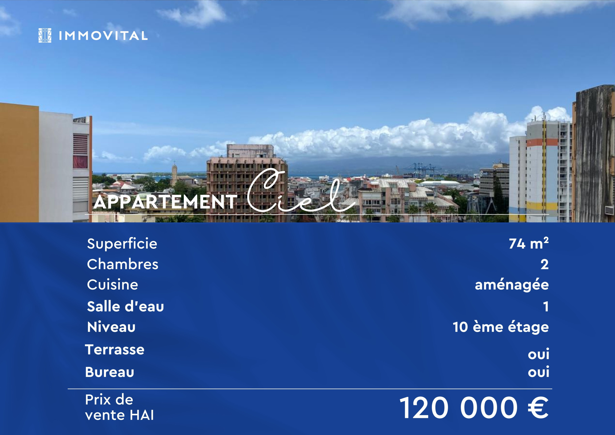 IMMOVITAL vous propose à la vente ce bel appartement de type T4, situé au 10e étage de la Tour FERDIN CUIRRASSIER, à l'entrée du centre-ville de Pointe-à-Pitre, en Guadeloupe. Un bien rare, bénéficiant d'un emplacement central et accessible par ascenseur.