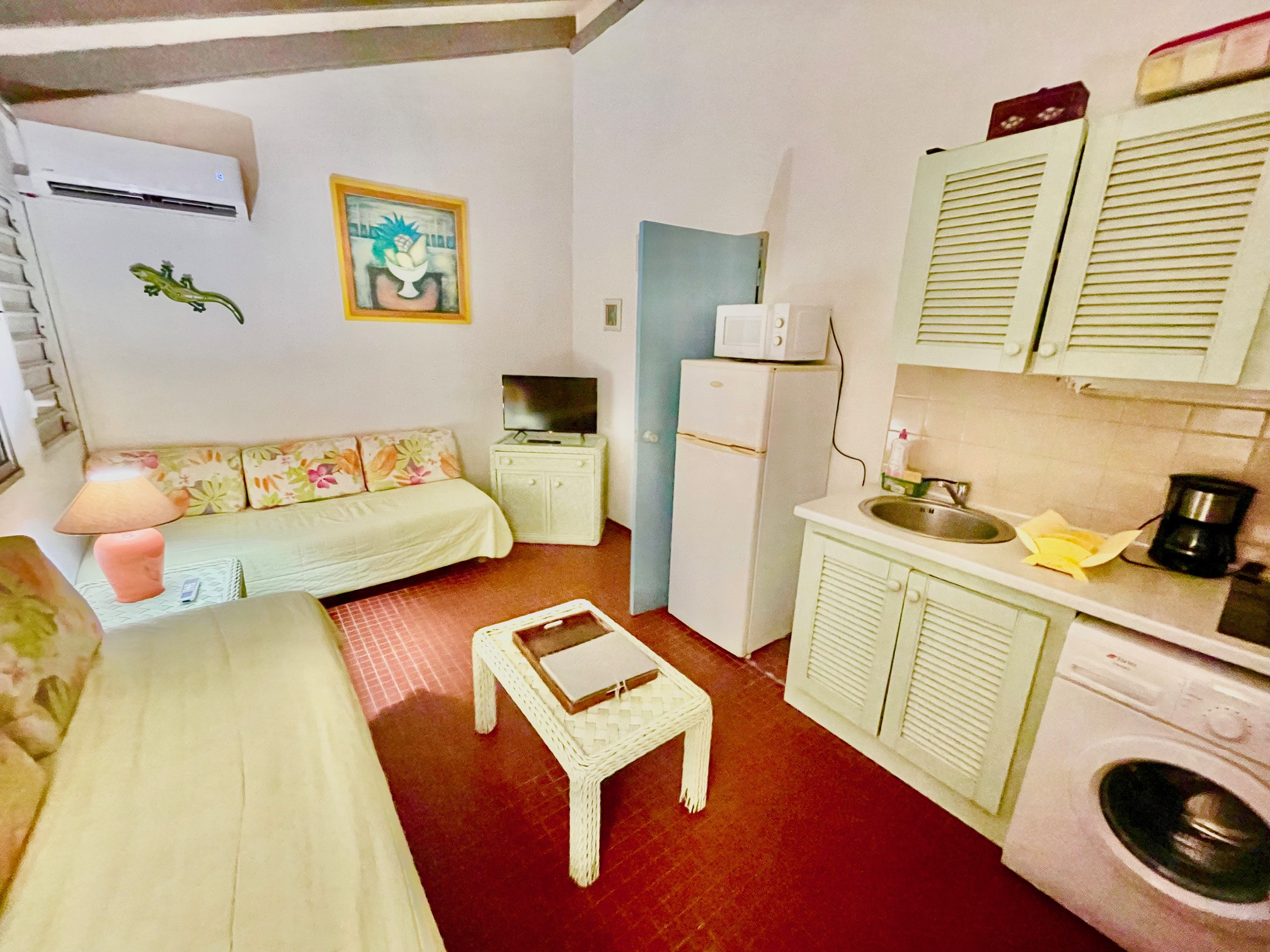 MARINA : T2/3 meublé et équipé en étage de 47 m2 (dont 21m2 de terrasse incluse), situé au coeur de la Marina, proche des plages, commerces, golf, restaurants, dans une résidence sécurisée avec accès à 3 piscines et au parc tropical arboré. Composé d'une magnifique terrasse ventilée (pouvant étre fermée et aménagée en salon avec cuisine US) bénéficiant d'une vue dégagée sur le parc et une pisicne, un salon avec 2 couchages climatisé et kitchenette équipée, une chambre climatisée avec placard, une salle d'eau, un WC séparé, une petite mezzanine. Agréable lieu de vie au calme avec toutes les commodités accessibles à pied. Pour plus d'informations contacter Laurence CAILLET par WHATSAPP et SMS au +590 690 002 312 ou par SMS au 0690 35 97 18 et par mail : laurence@immo971.com et/ou cailletlo971@gmail.com en laissant vos coordonnées et l'objet de votre appel.