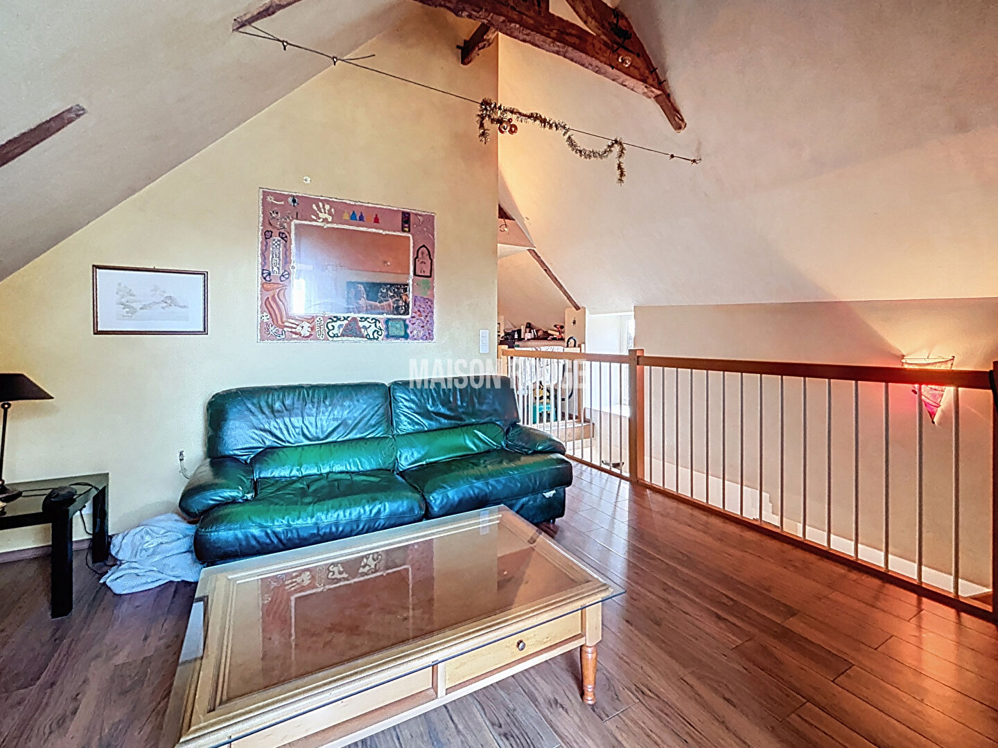 Vous trouverez au rez-de-chaussée : un séjour ouvert sur la cuisine, une chambre, un espace buanderie et des toilettes séparées.